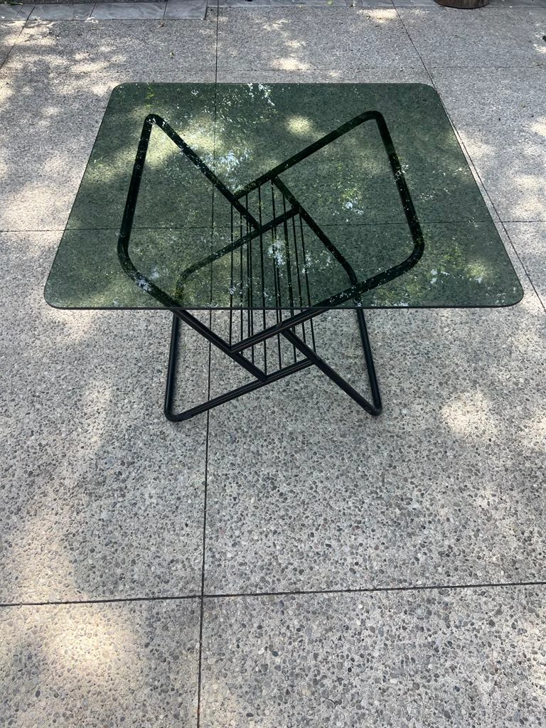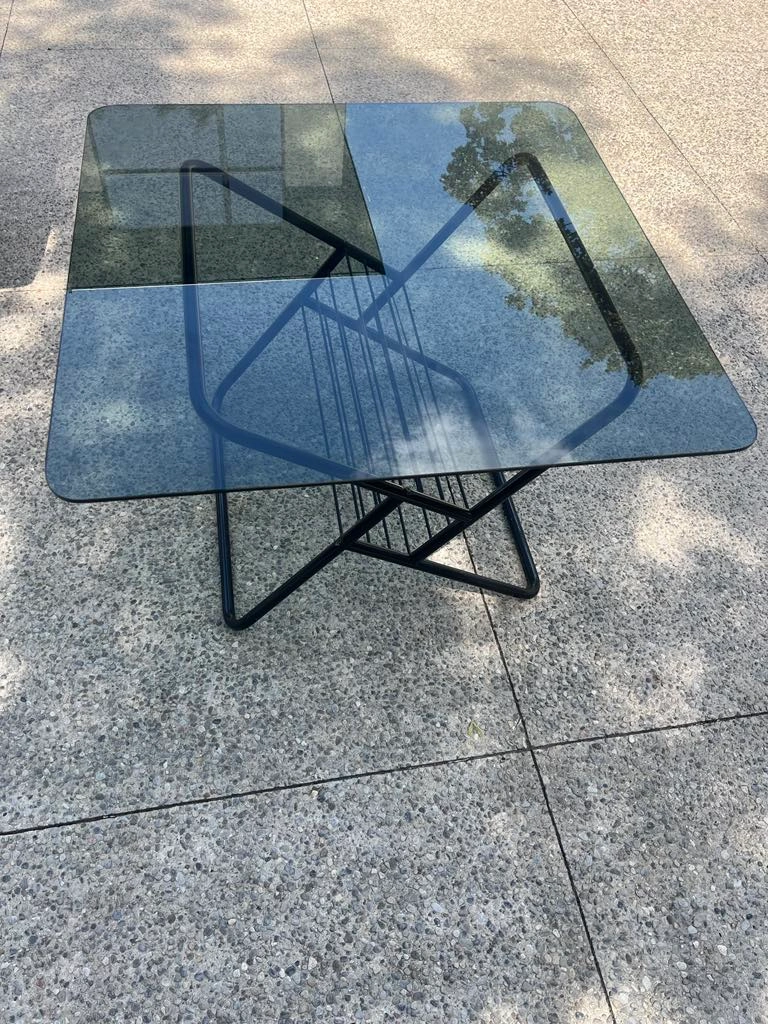 Selling a glass top table with a black metal frame. It's a stylish piece that would look great in any room. The table is in good condition and ready for a new home!