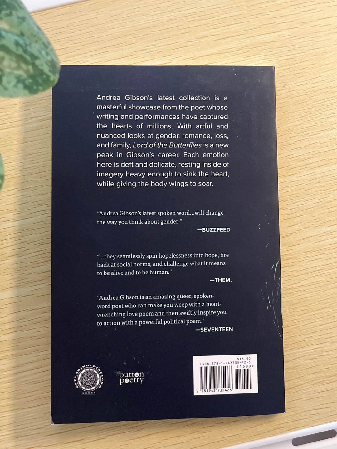 Selling Andrea Gibson's latest collection, Lord of the Butterflies! It's a masterful showcase from the poet whose writing and performances have captured the hearts of millions. With artful and nuanced looks at gender, romance, loss, and family, this book is a new peak in Gibson's career. Each emotion here is deft and delicate, resting inside of imagery heavy enough to sink the heart, while giving the body wings to soar
