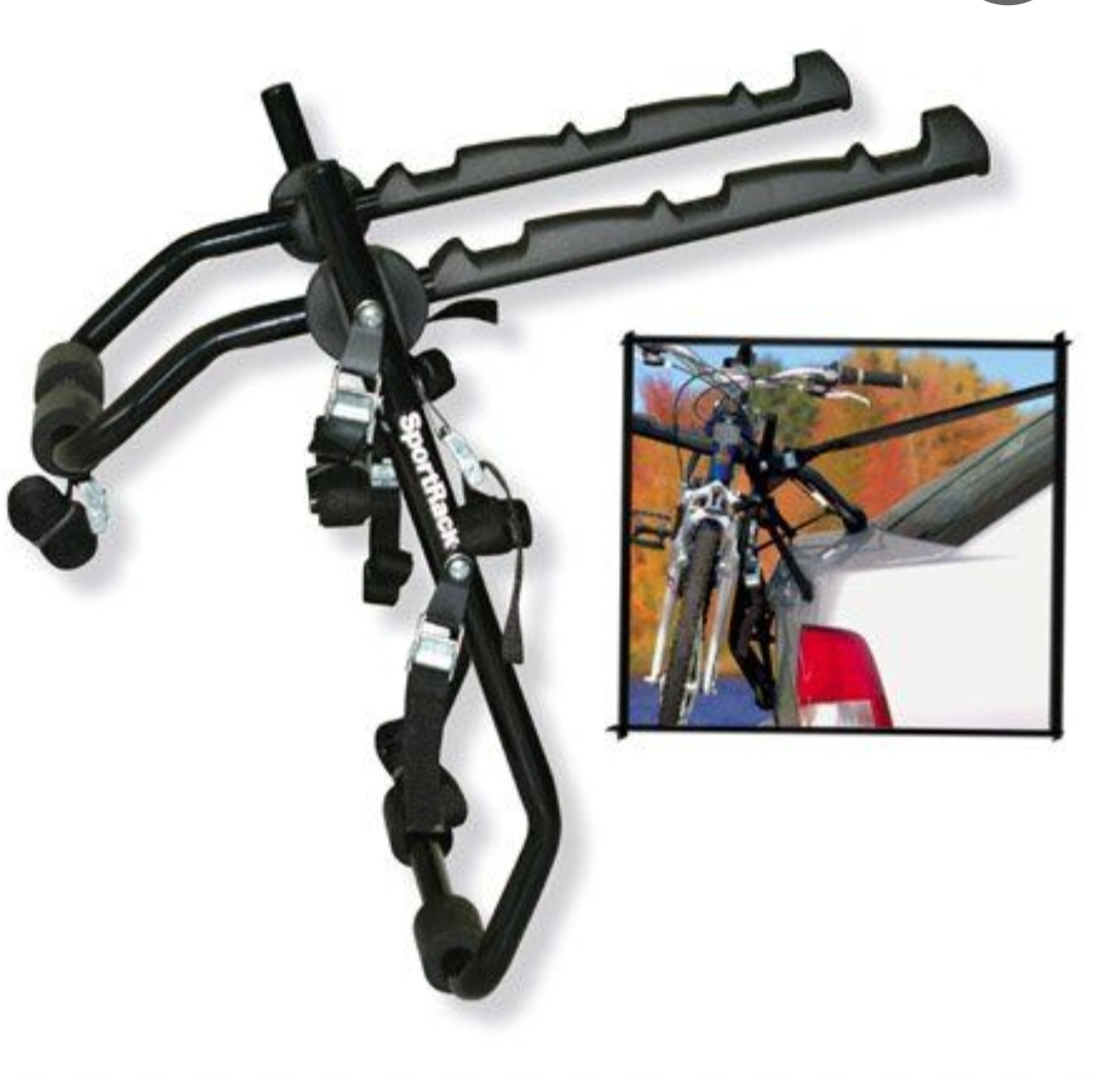 Selling a SportRack A1162 EuroTrio 3 Bike Trunk Mount Carrier. It's a rear-mounted bicycle rack that can carry up to 3 bikes. Perfect for family outings or cycling trips with friends! It's in the box.