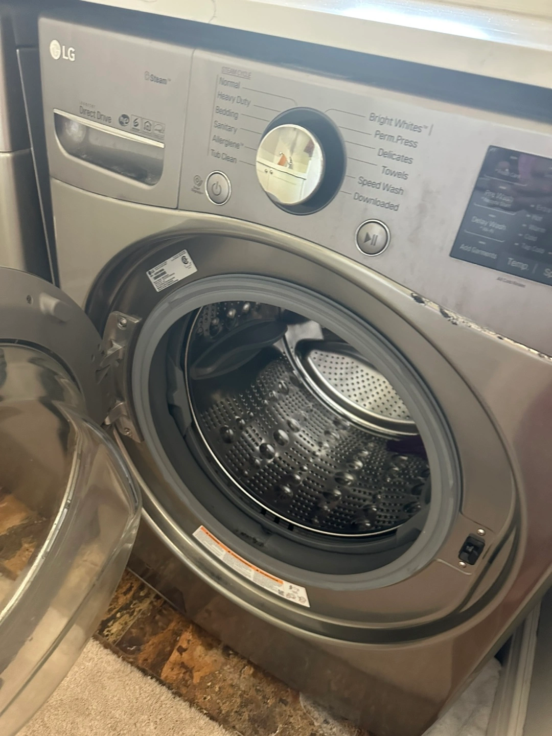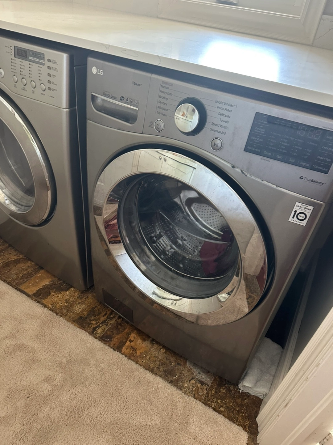 Selling an LG washing machine with Direct Drive motor and a 10-year warranty on the motor.