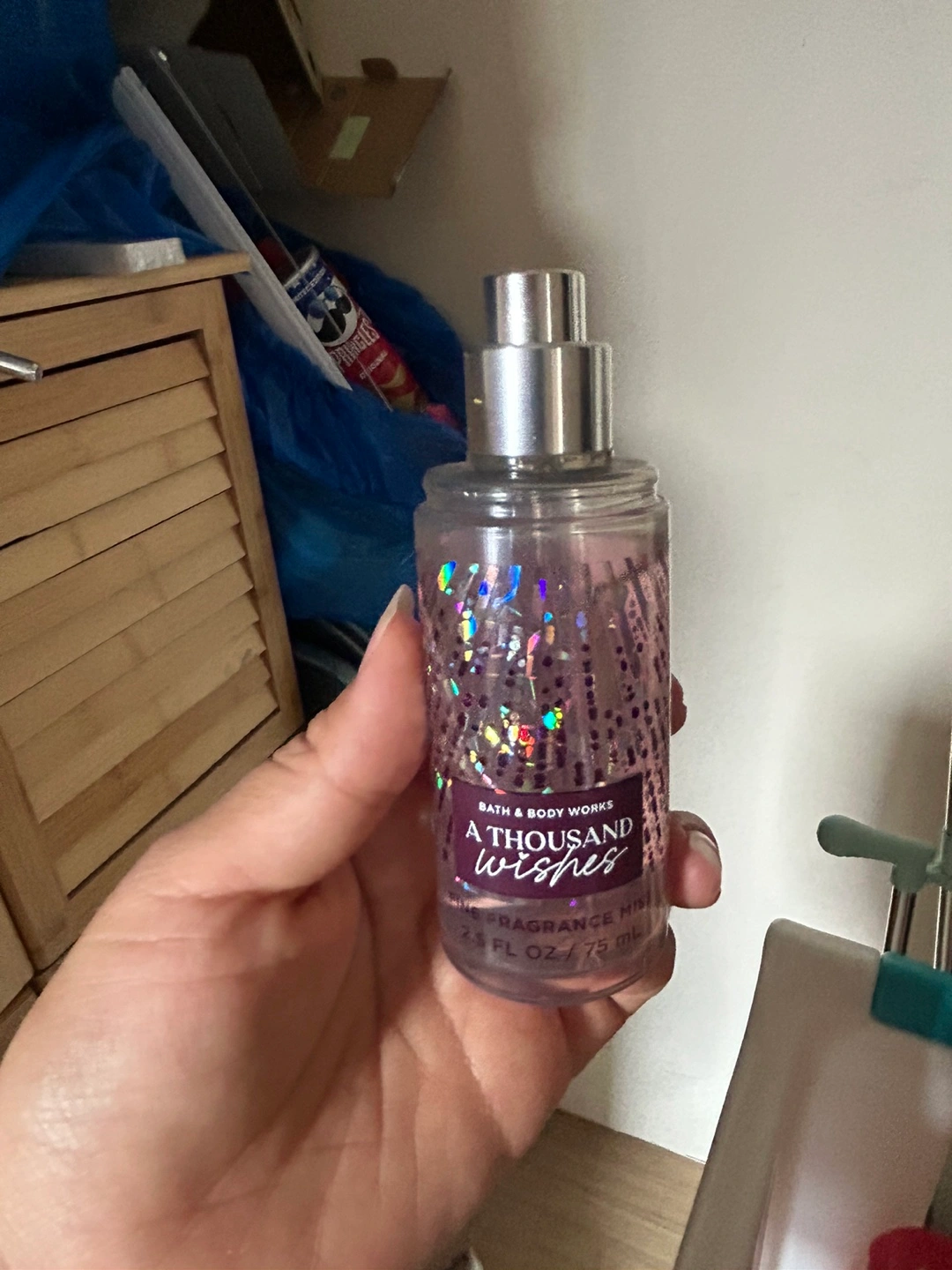 748a Bath & Body Works fragrance mist in the scent A Thousand Wishes! It's a 2.5 fl oz / 75 mL bottle. Perfect for on the go