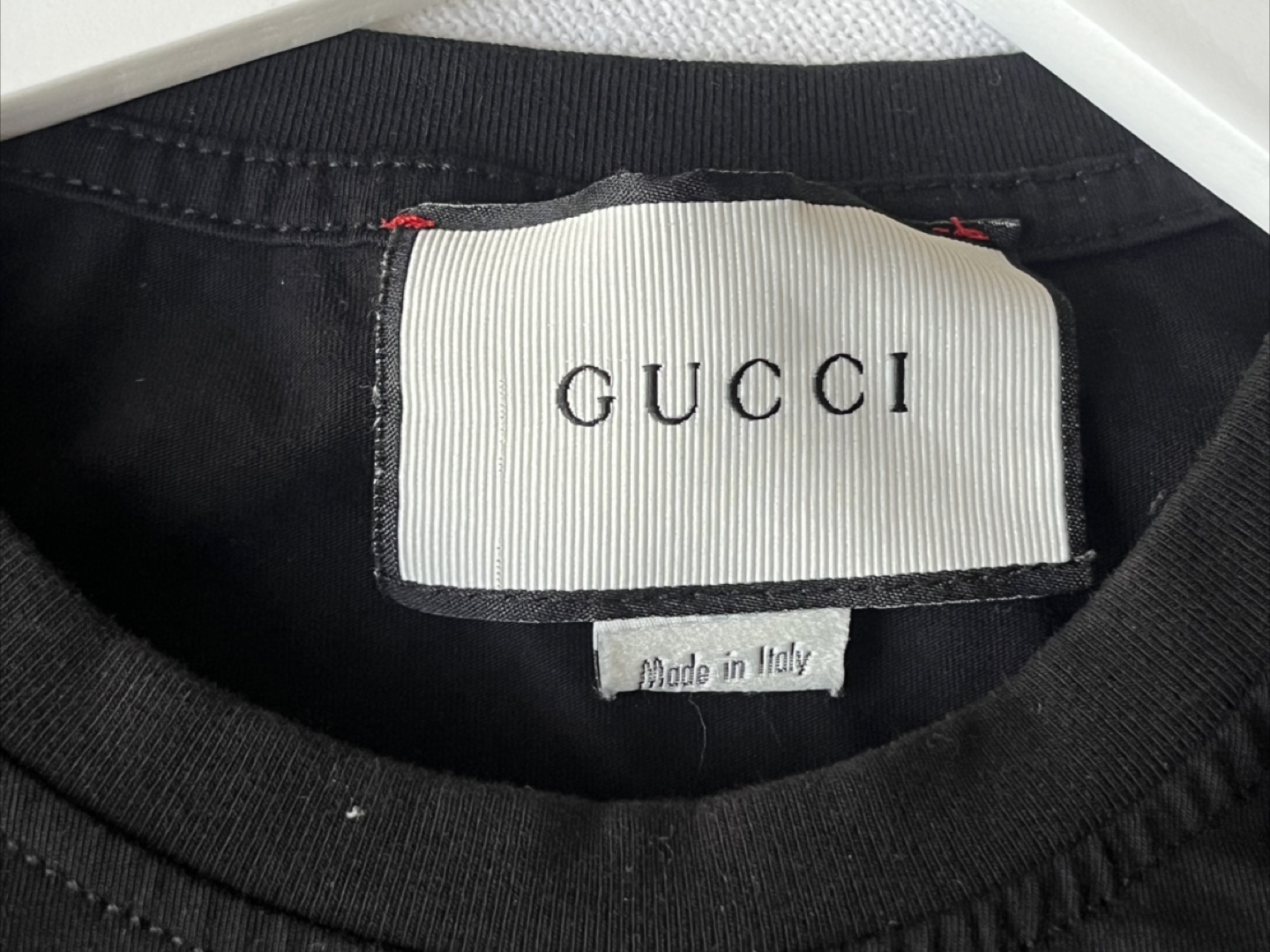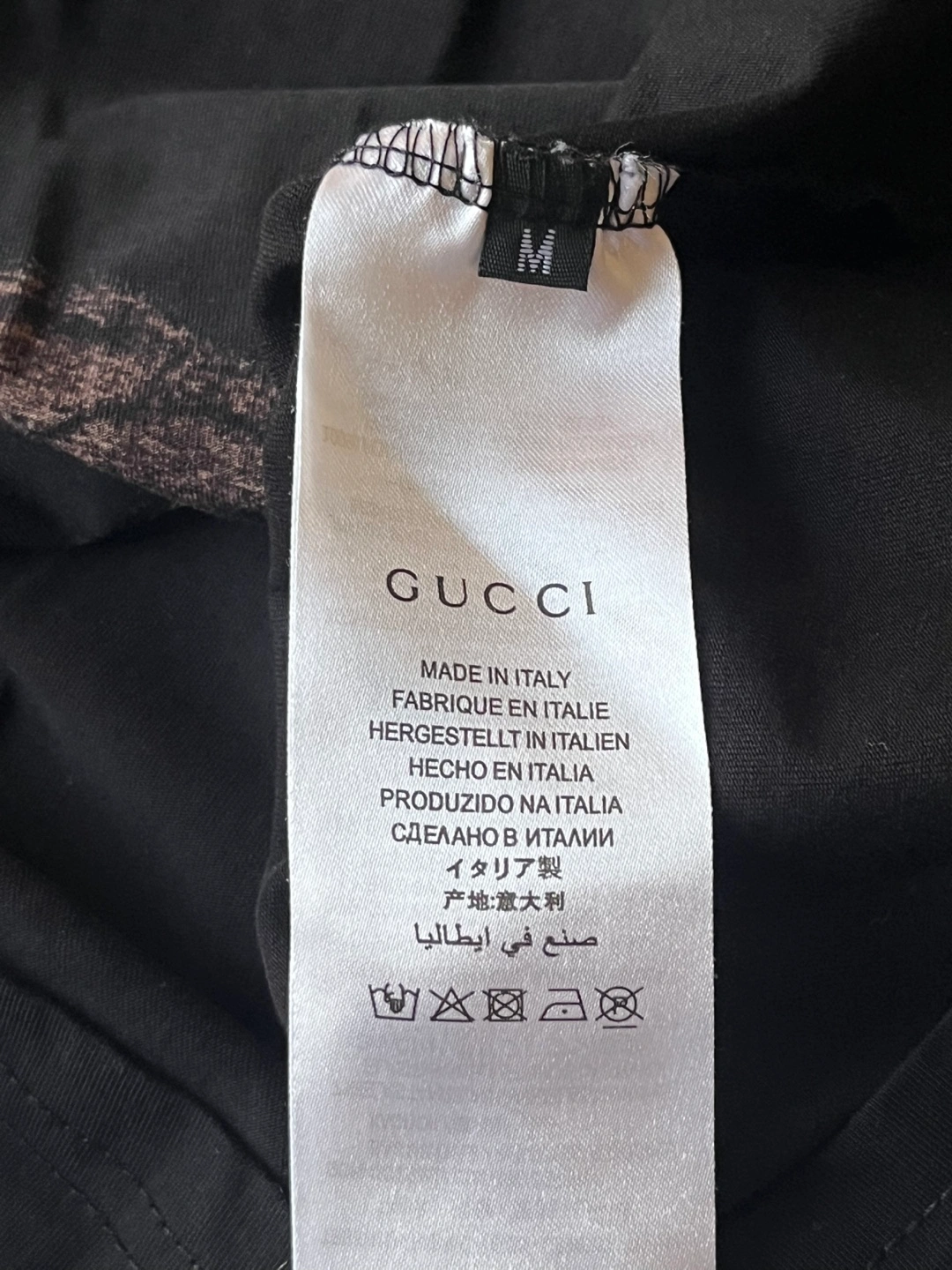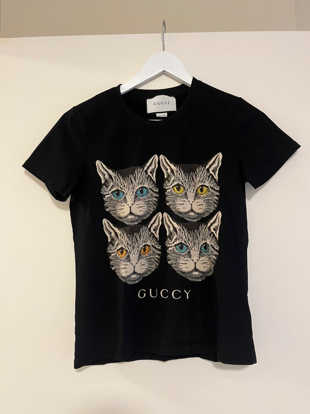 Selling a Gucci black t-shirt in size M but I’d say it fits like a small. The shirt is made in Italy and features a cool cat design on the front. It's made of 93% cotton and 7% elastane for a comfortable fit. The trimming is 100% polyamide/nylon