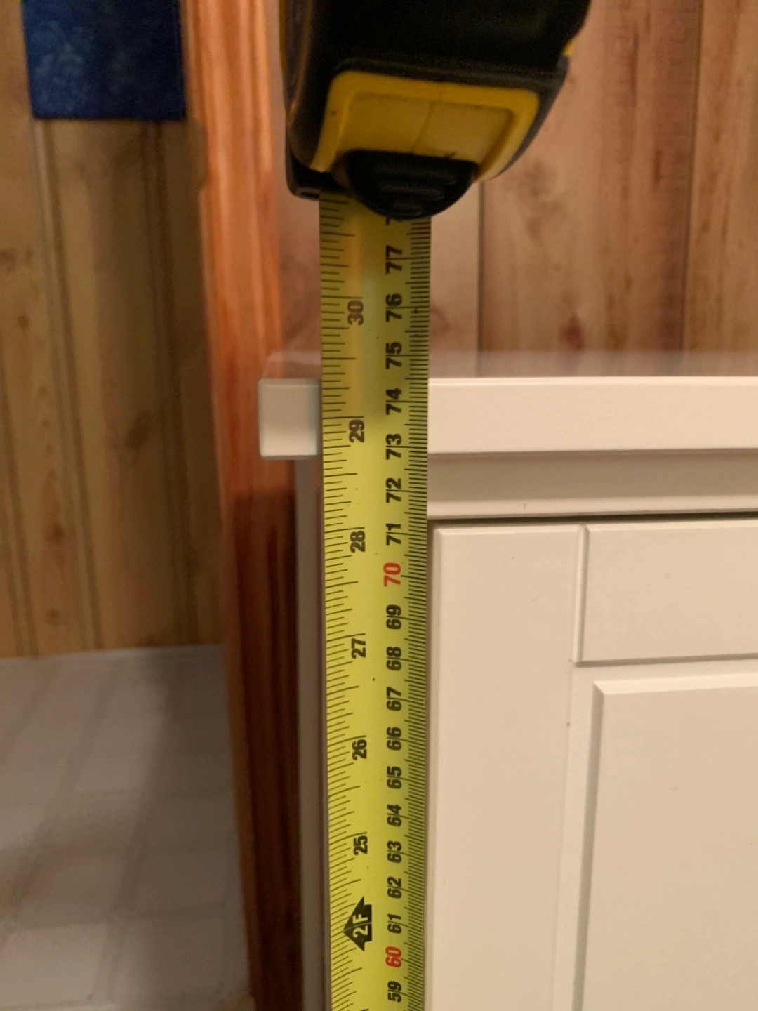Tabletop is 39x39cm and the height is 74 1/2cm