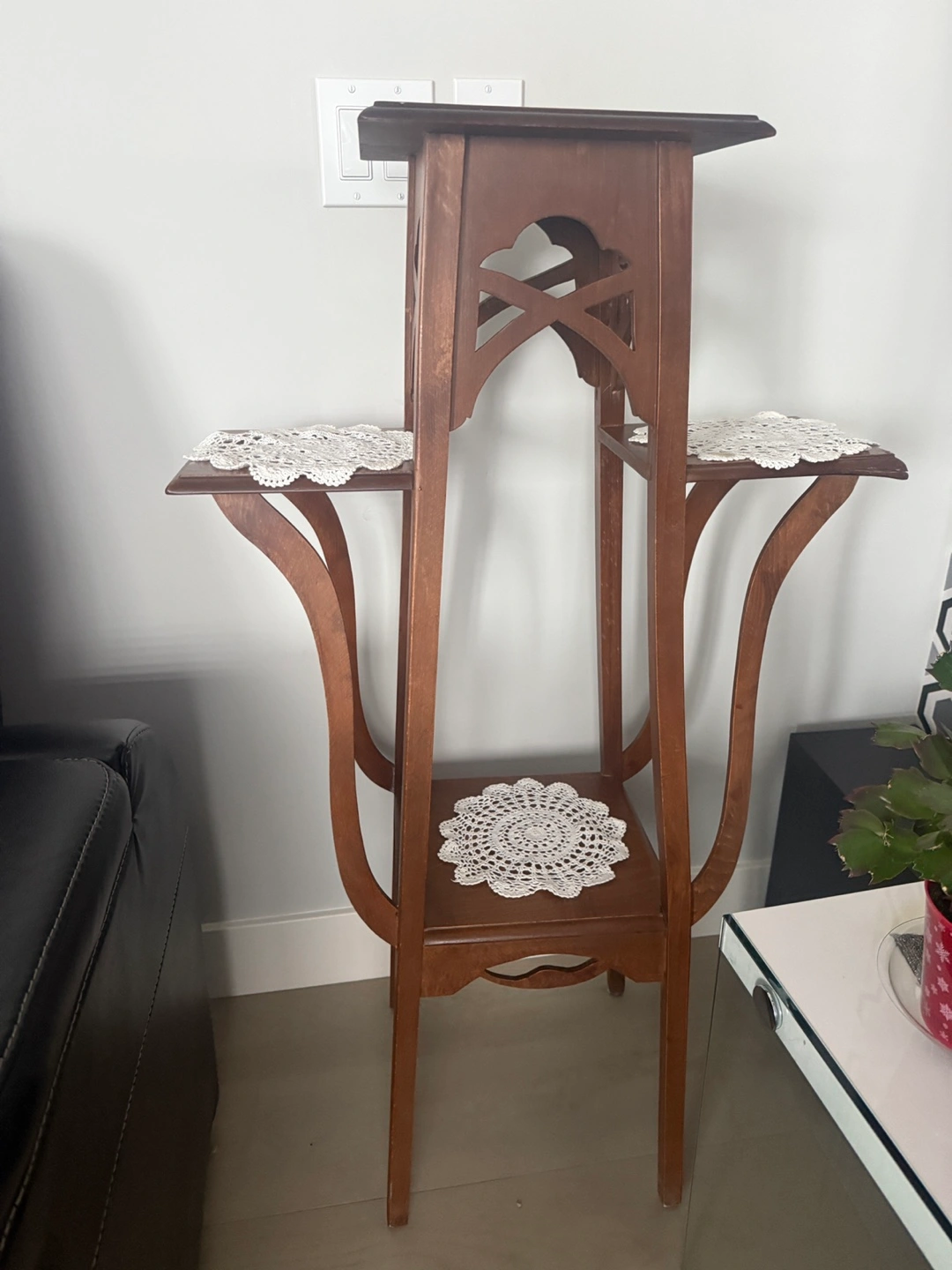 Selling a lovely wooden plant stand! It features three tiers, perfect for displaying your favourite plants or decorative items. It's in great condition and ready to add a touch of charm to your home