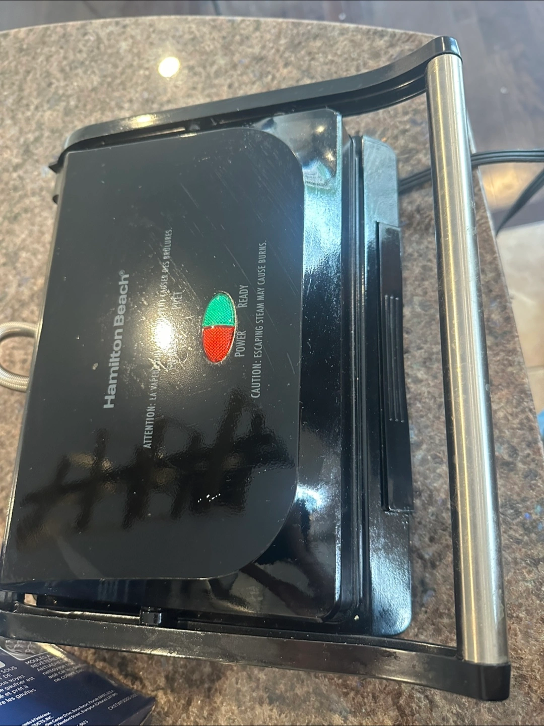 Hamilton Beach grill in good condition! Perfect for making paninis or grilling indoors. It's easy to use and clean. Great for small spaces or when you don't want to fire up the big grill