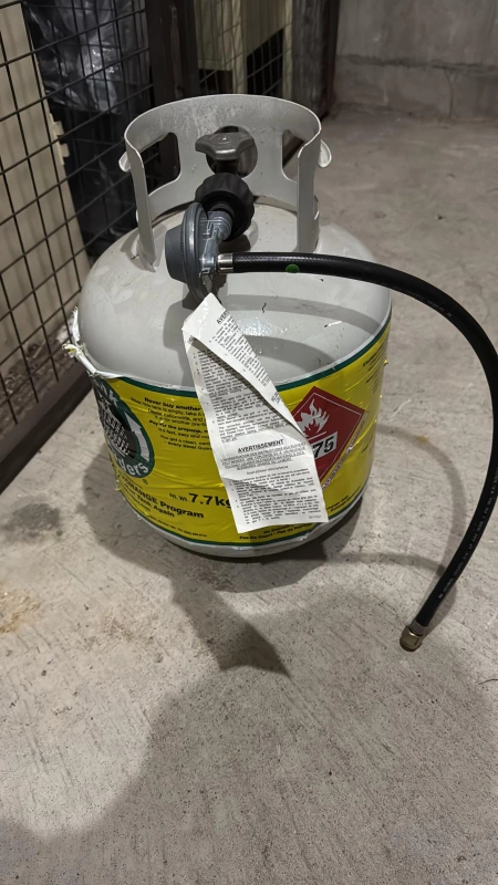 Selling a propane tank that holds 7.7kg of propane. It comes with a hose, so you can hook it up to your BBQ or other propane appliance right away! Great for grilling season or camping trips