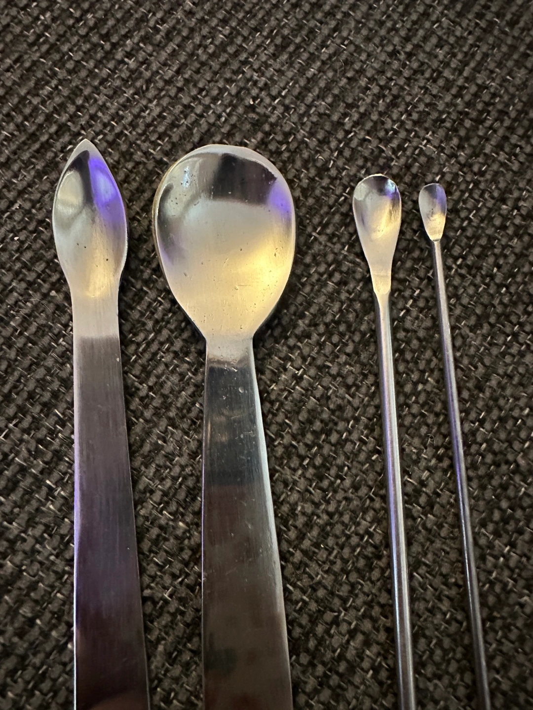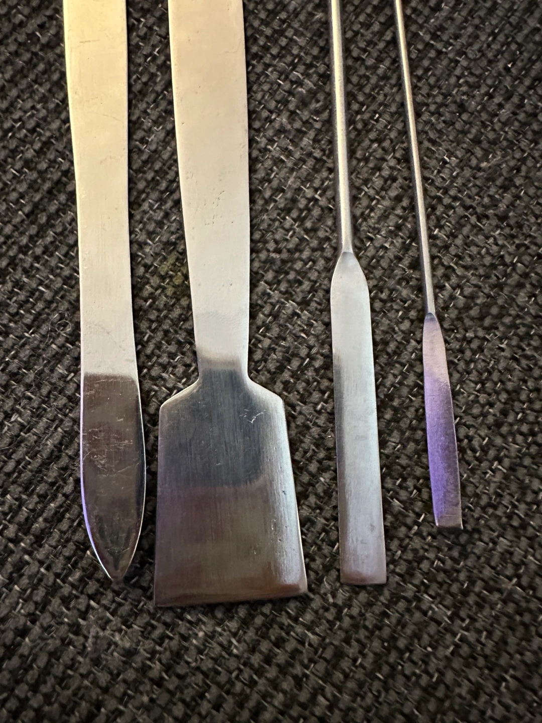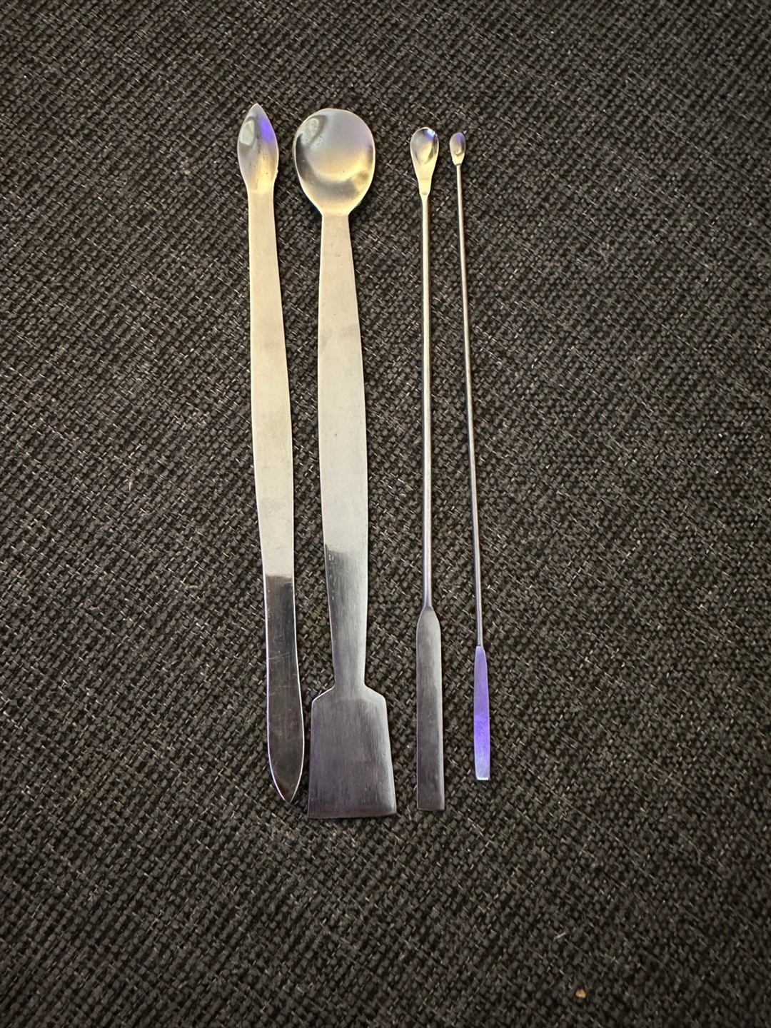 10Selling a set of stainless steel spatulas. Great for various lab, crafting or kitchen uses! Double sided mixers 5 pieces