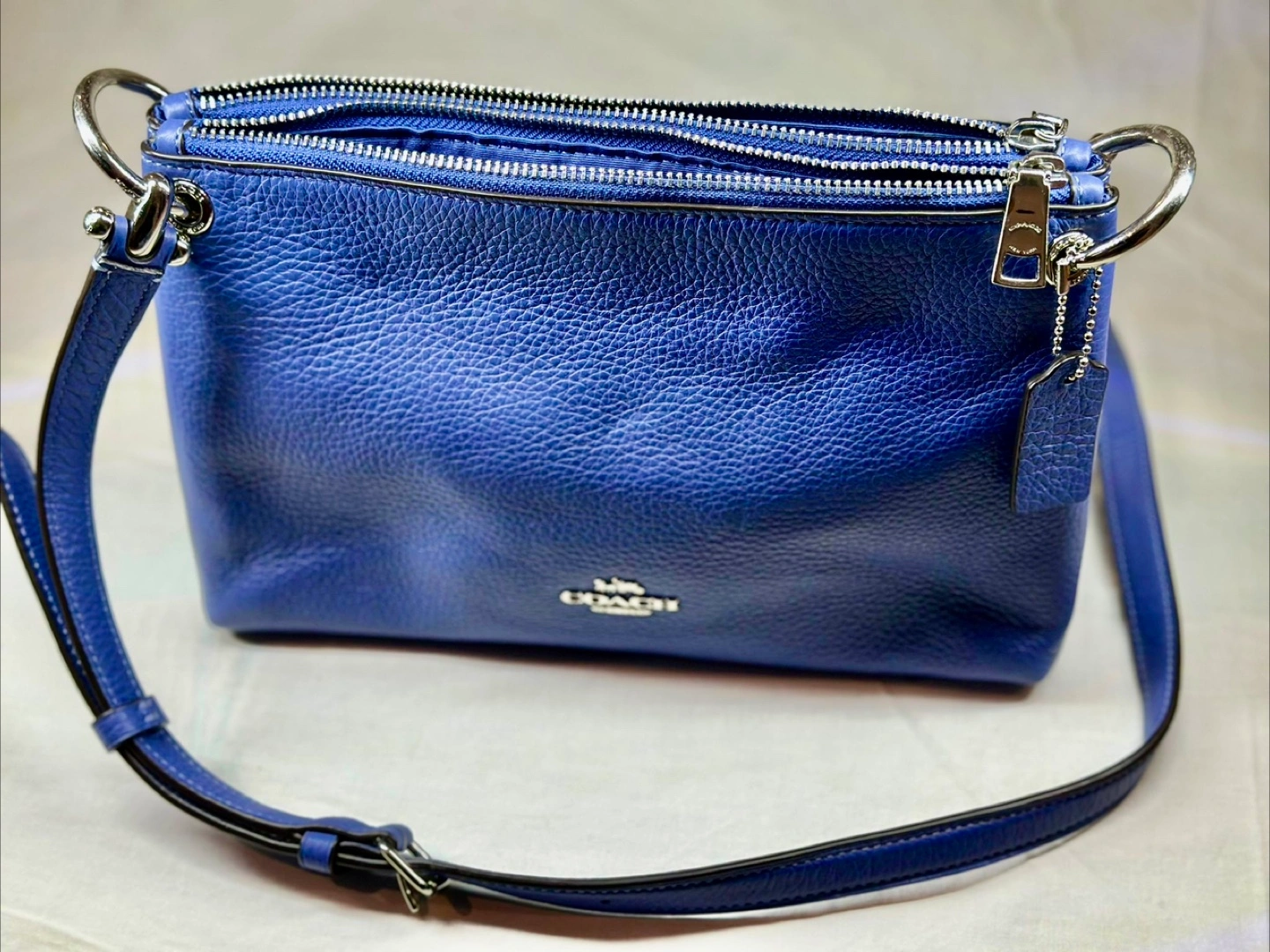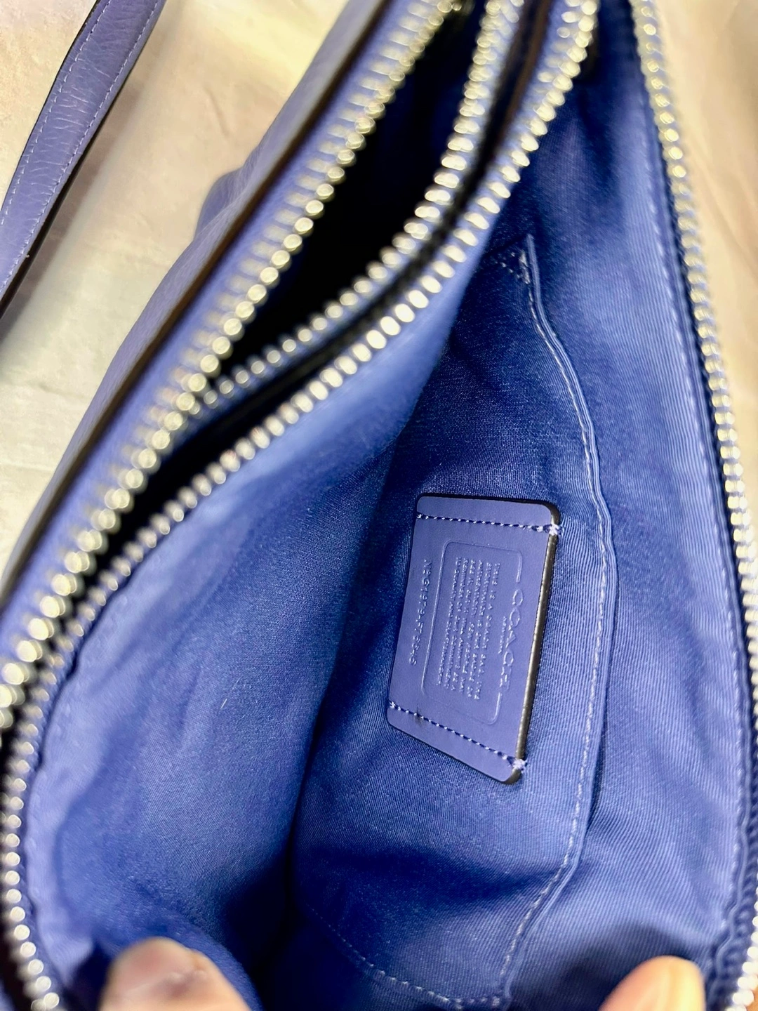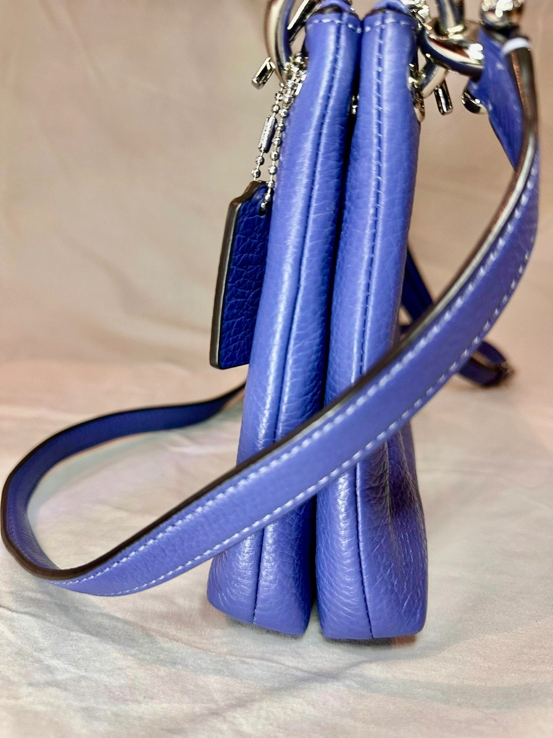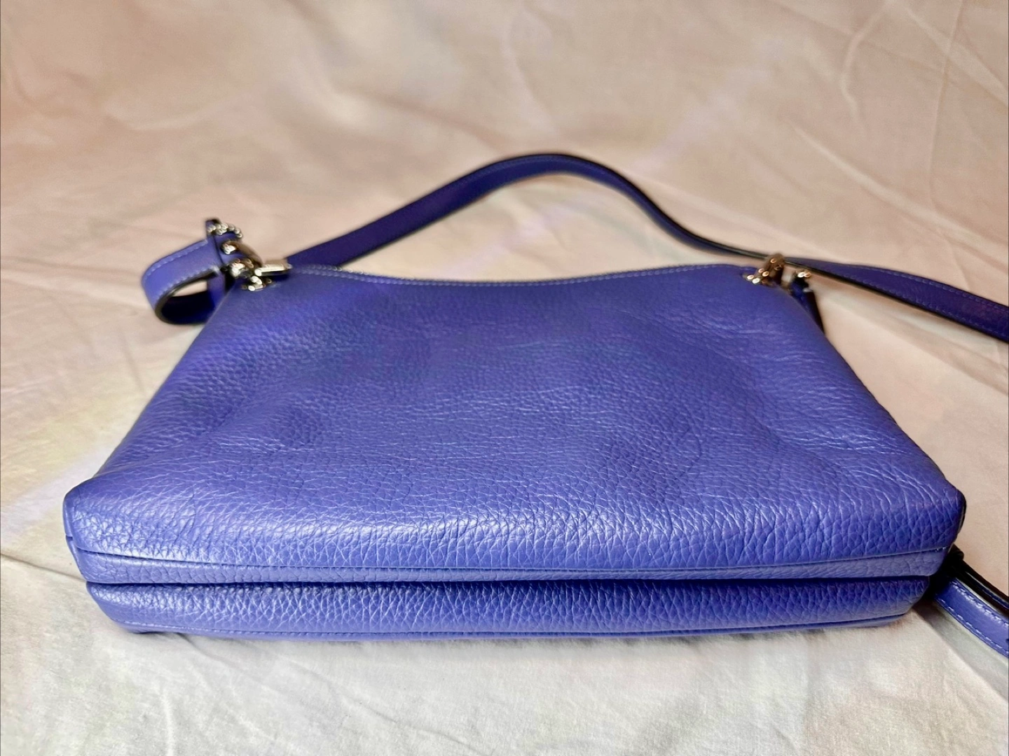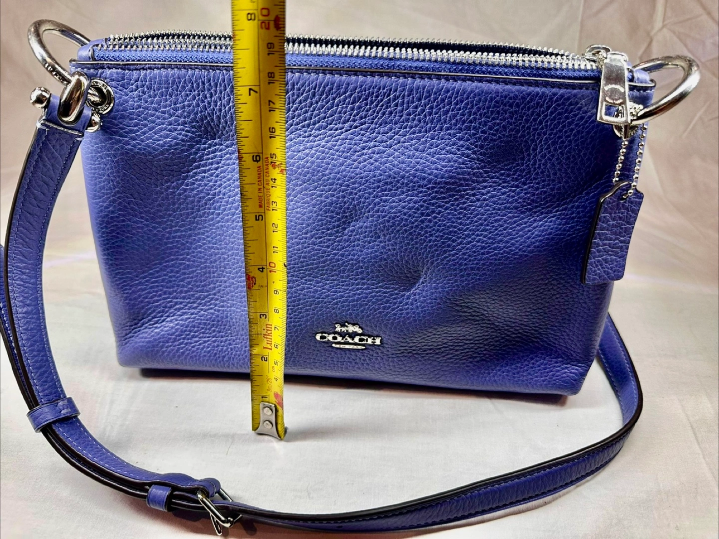 44Coach Leather Crossbody Bag - Purple Here's a lovely Coach crossbody bag in a beautiful shade of purple! It's made of leather and would be a great addition to your collection
