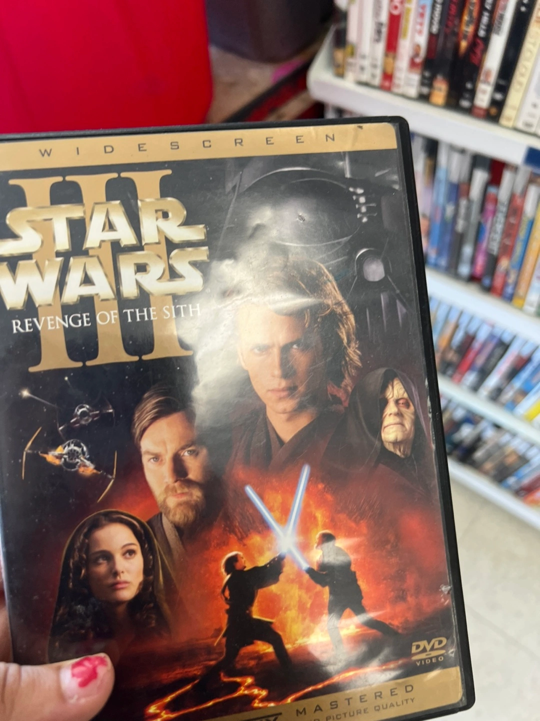 Selling a used DVD of Star Wars Episode III: Revenge of the Sith. It's in good condition and ready for a new home! Enjoy this widescreen version of the movie.