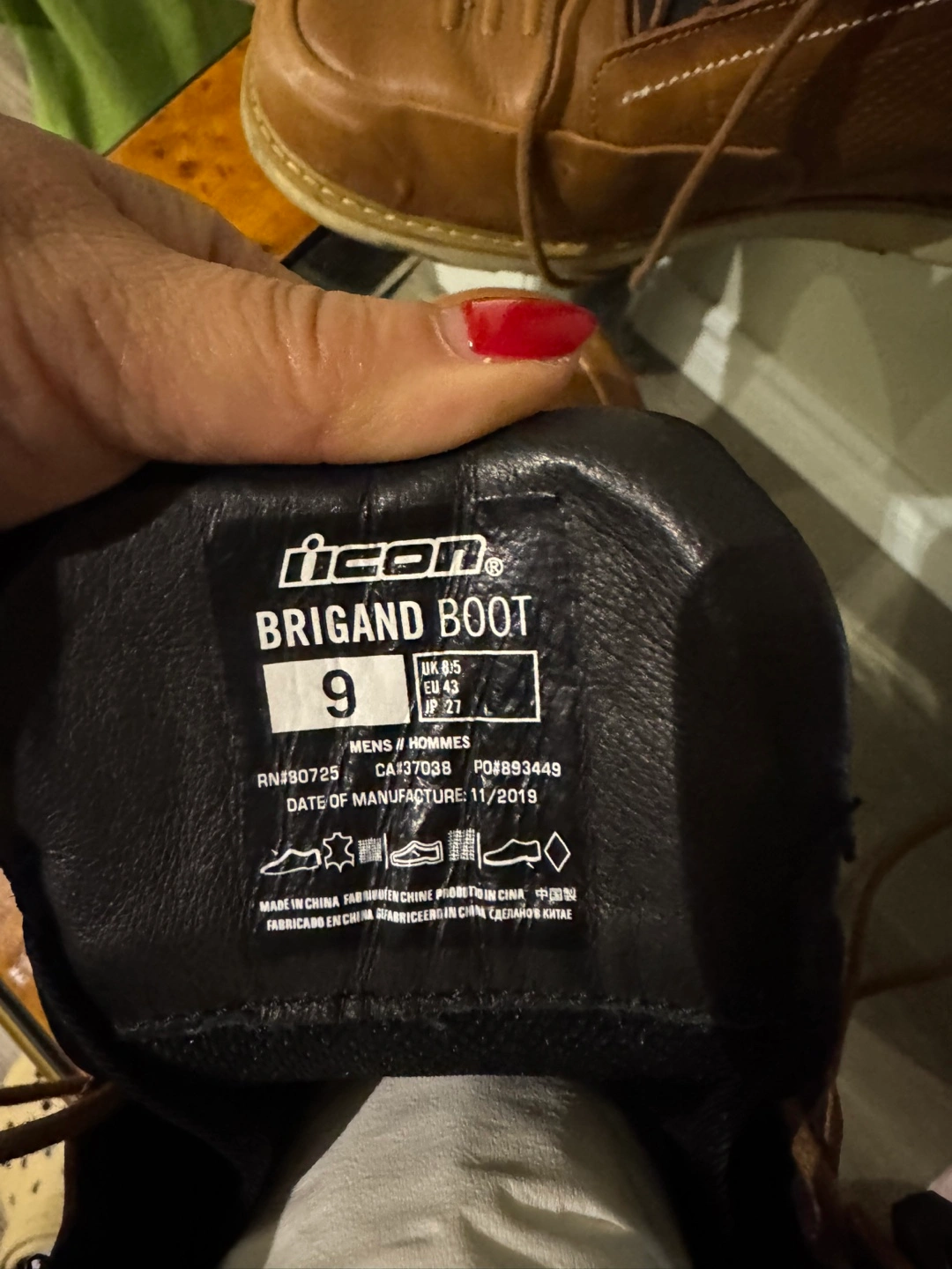 Selling a pair of Icon Brigand boots in great condition! These are a men's size 9. They are a stylish and durable option for riding or everyday wear. Almost new. Great condition
