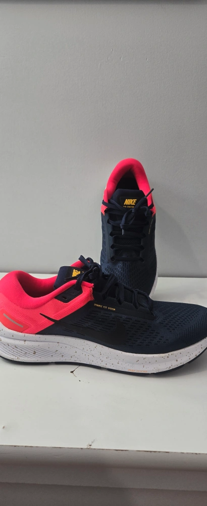 Selling a pair of Nike running shoes in a stylish blue and pink colour combination. They feature a dynamic fit system for a comfortable and secure fit while you're out for a run or just running errands!
