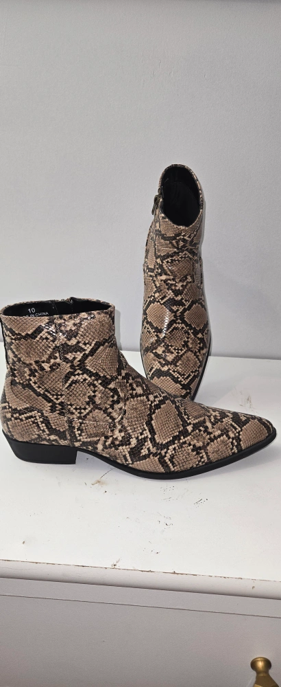Selling a pair of snakeskin print ankle boots in a women's size 10. They're in great condition and ready for a new home! Perfect for adding a bit of edge to your outfit