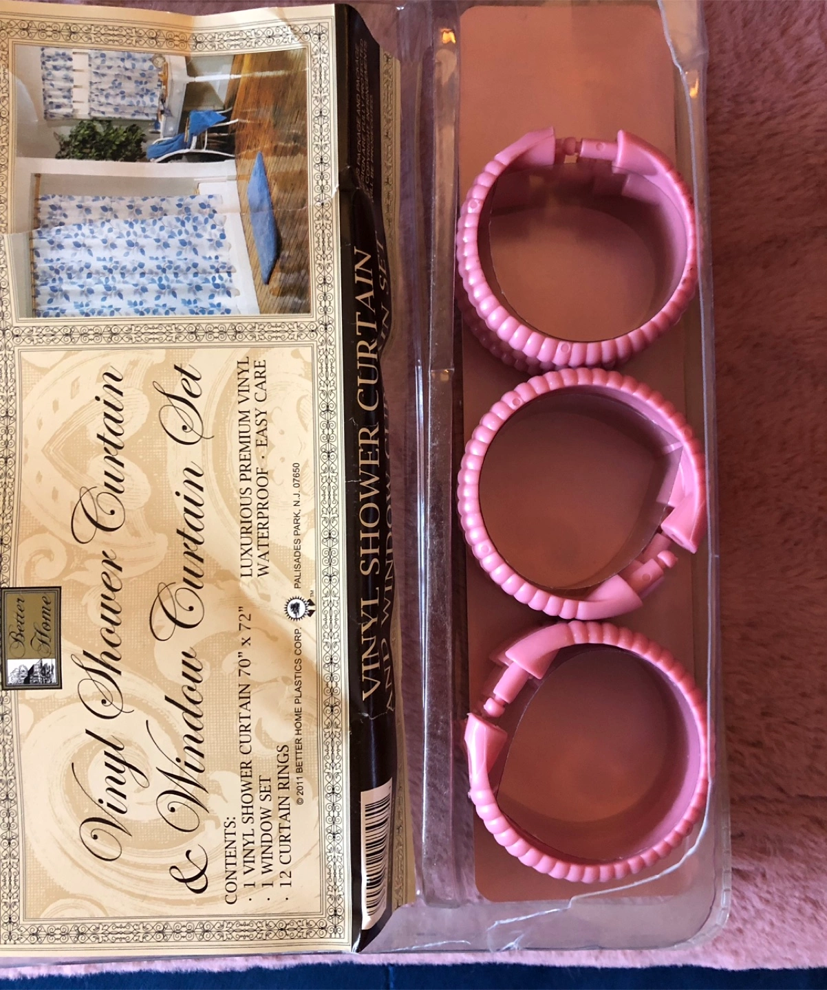 Brand New Better Homes vinyl shower curtain and window curtain set! It's a luxurious premium vinyl, waterproof, and easy to care for. The set includes one vinyl shower curtain (70" x 72"), one window set, and 12 curtain rings.