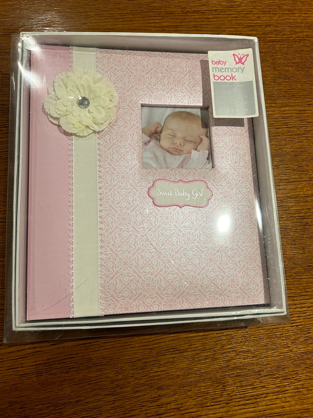 Selling a brand new C.R. Gibson baby memory book still in its original packaging! It's a lovely pink colour with a floral design and a cute flower embellishment. This loose-leaf format book is perfect for recording memories and milestones of baby's first five years. The pages are of archival quality, ensuring your precious memories are preserved for years to come