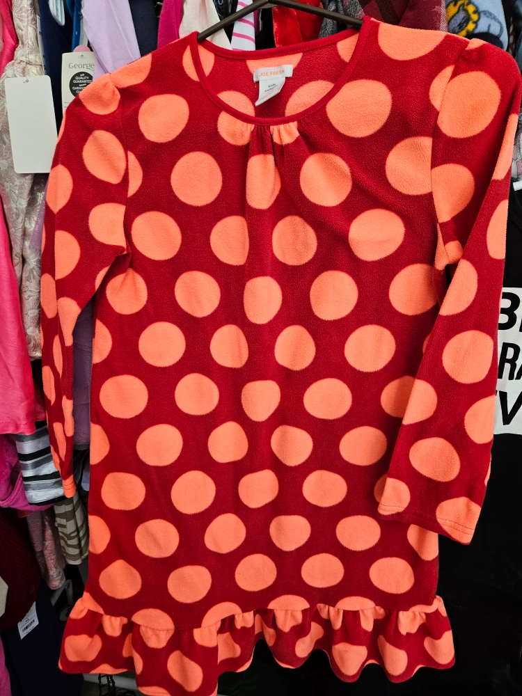 Cute Joe Fresh kids dress or pjs in excellent condition! It's a size XL (14) and features a fun red and orange polka dot pattern. Perfect for playdates or casual outings!