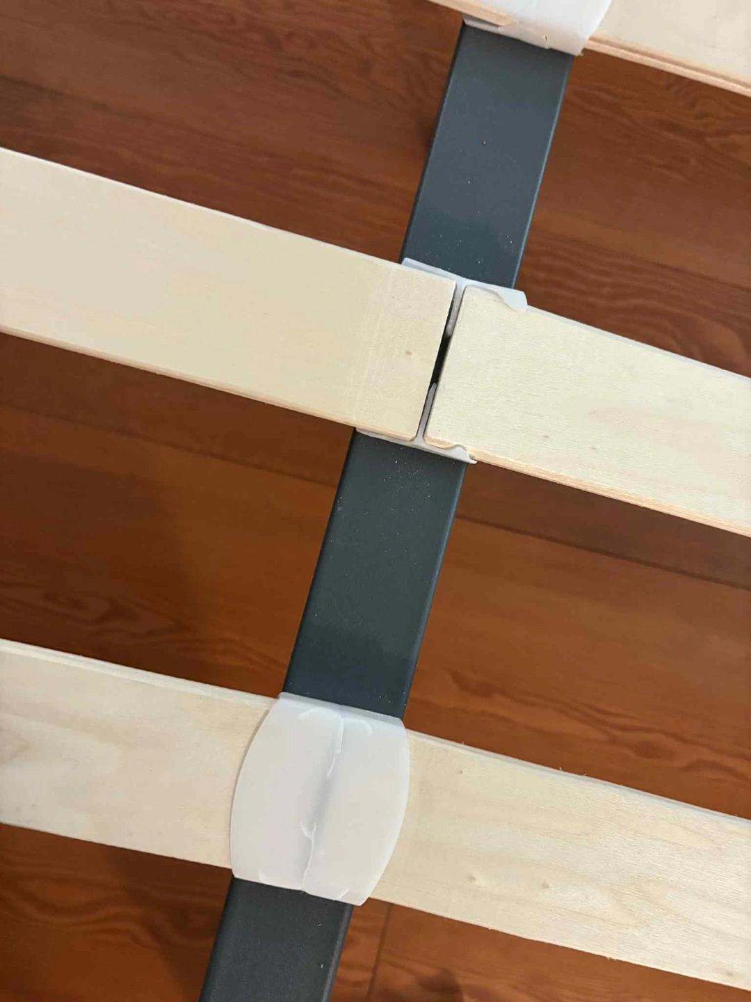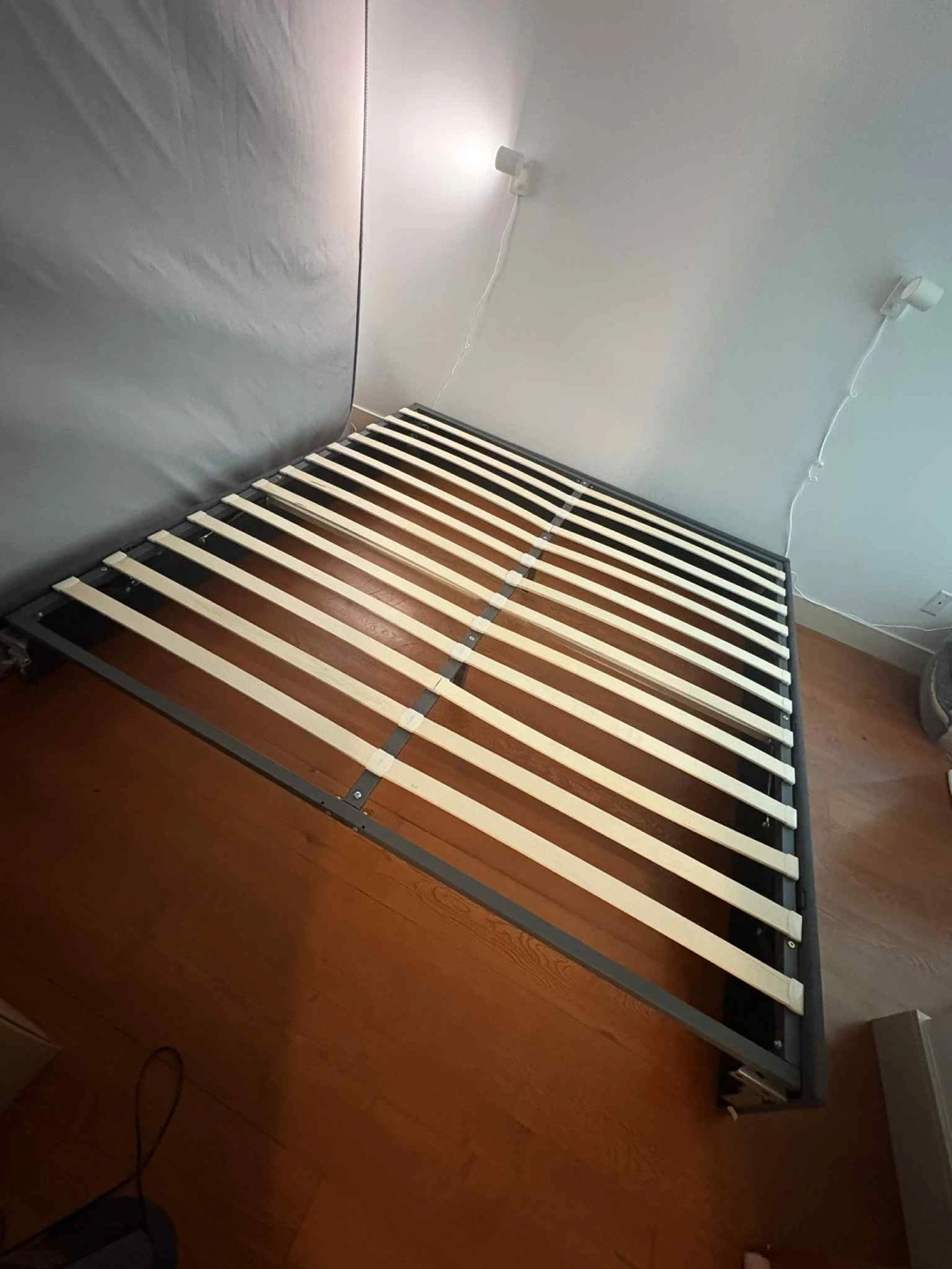 Note: moving company we hired broke 11 of the plastic pieces during the move which are still usable to hold wooden boards along frame, 1 missing plastic piece. Doesn’t affect the bed frame & the easy lift. The bed sits on frame good as can see in photo.
