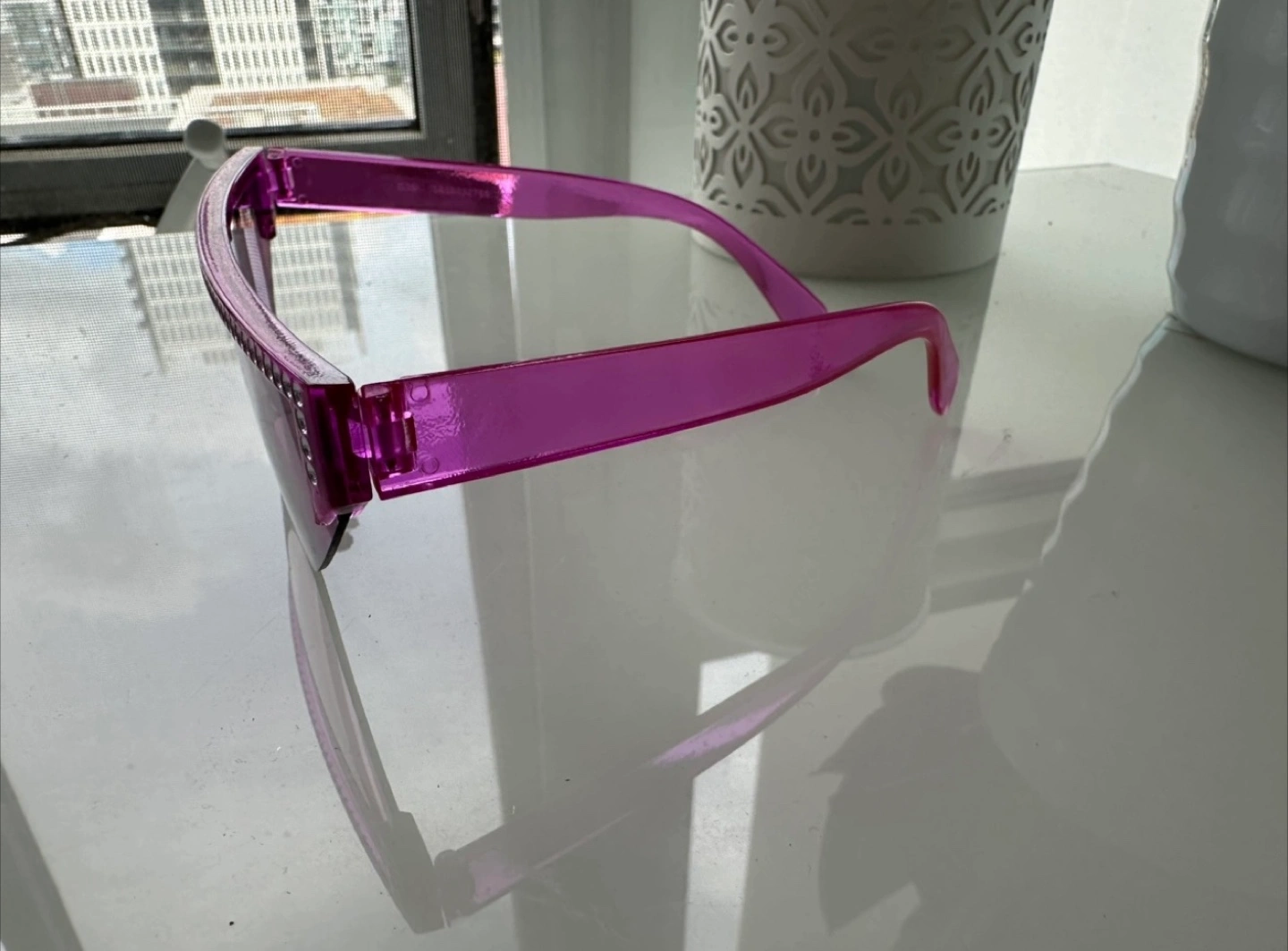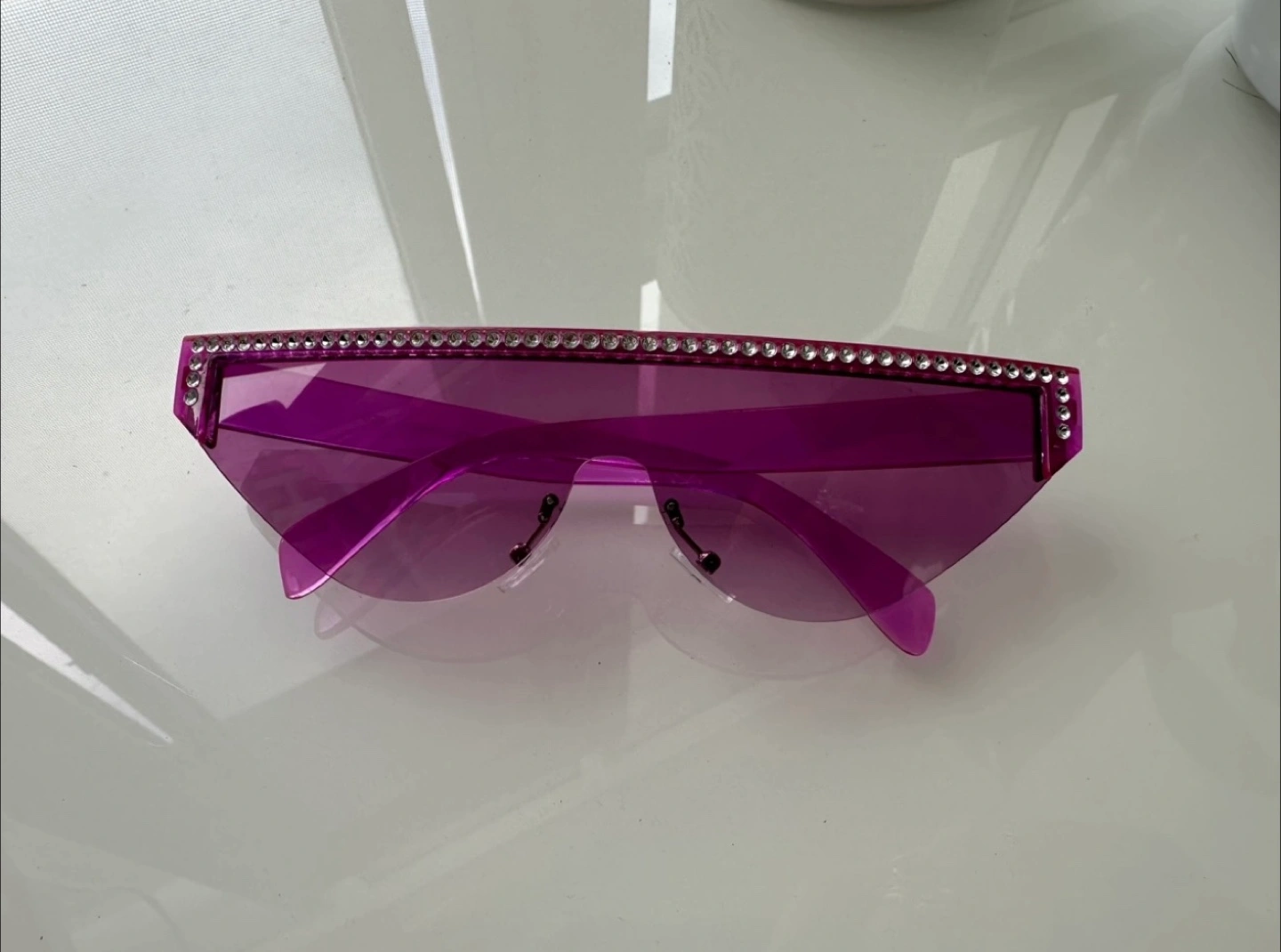 1000+These purple rimless sunglasses are a fun and stylish accessory! They feature a unique rimless design with a touch of bling along the top edge. Perfect for adding a pop of colour to your outfit on a sunny day $5 minimum spend to arrange pick up🙂