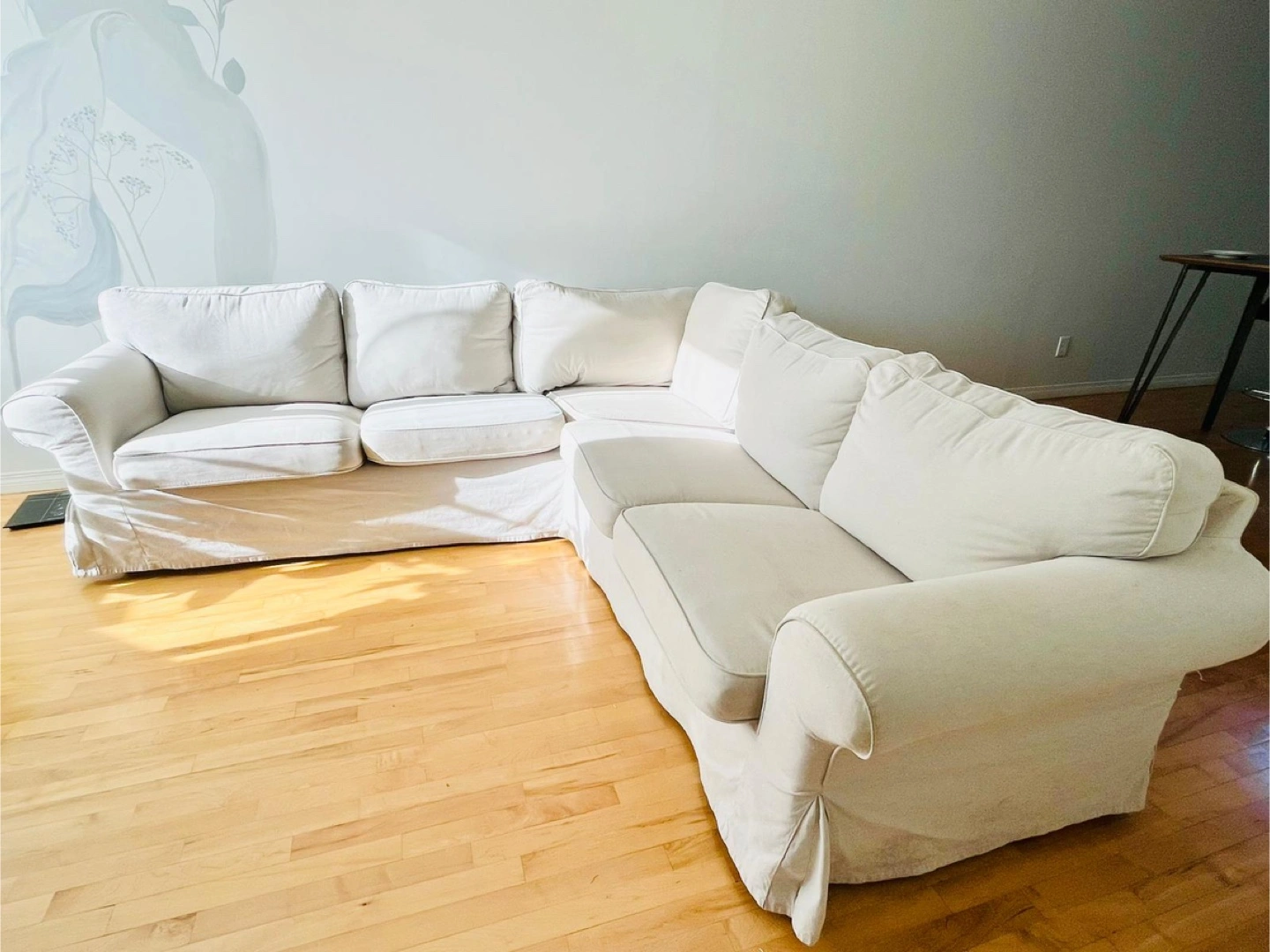 Comfortable and classic IKEA EKTORP corner sofa. Seats 4. Originally purchased for $1500. Removable, washable covers. From a smoke-free home.