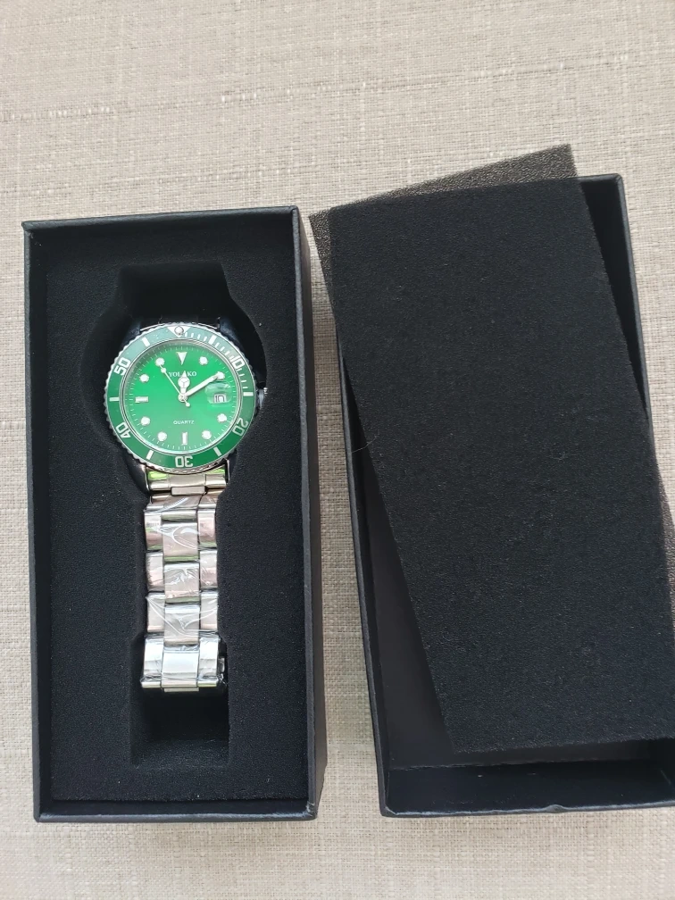 Selling a brand new YOLAKO quartz watch! It features a vibrant green face and comes complete with its original box