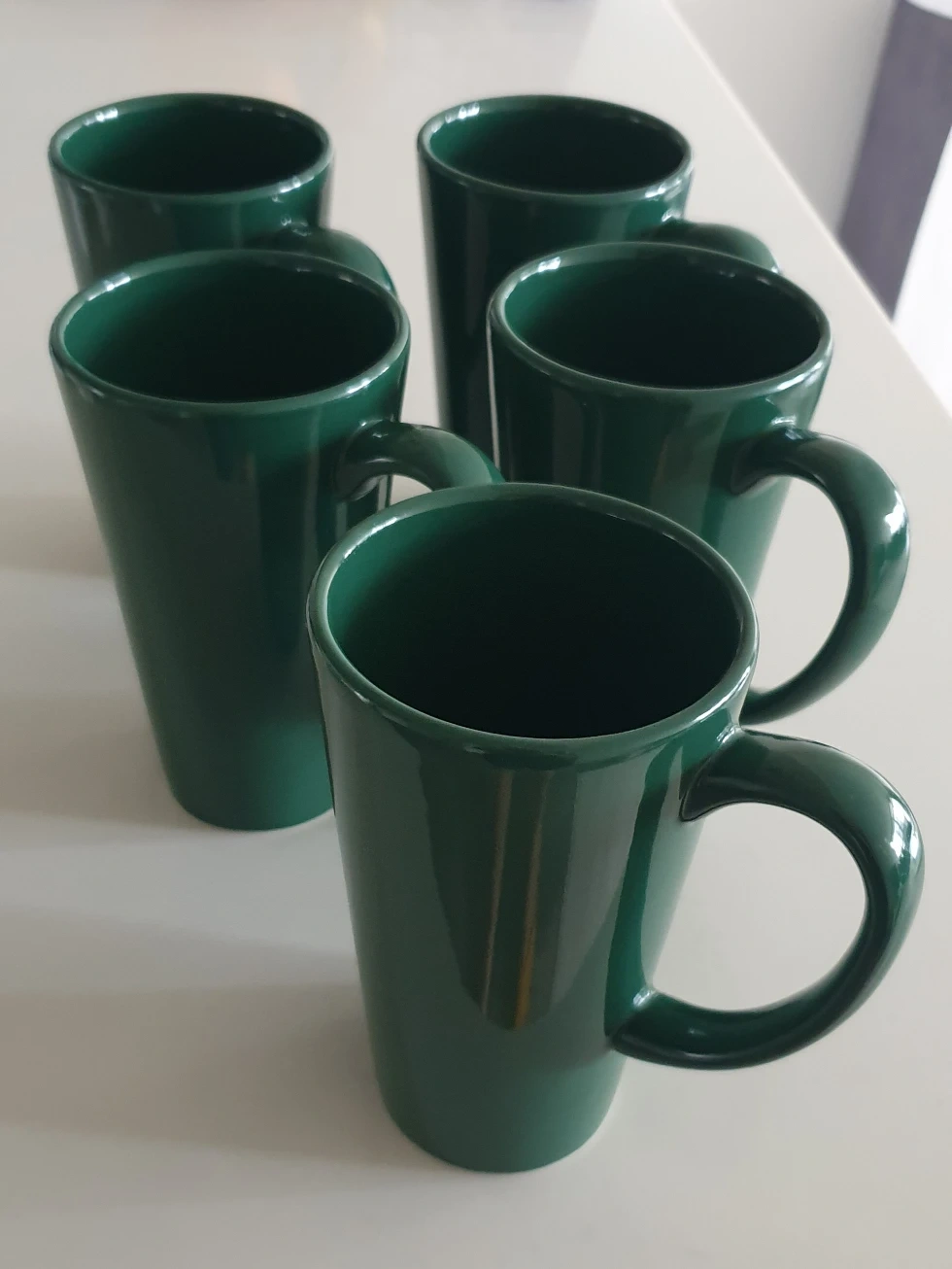 I'm selling a set of six ceramic mugs in a lovely dark green colour.