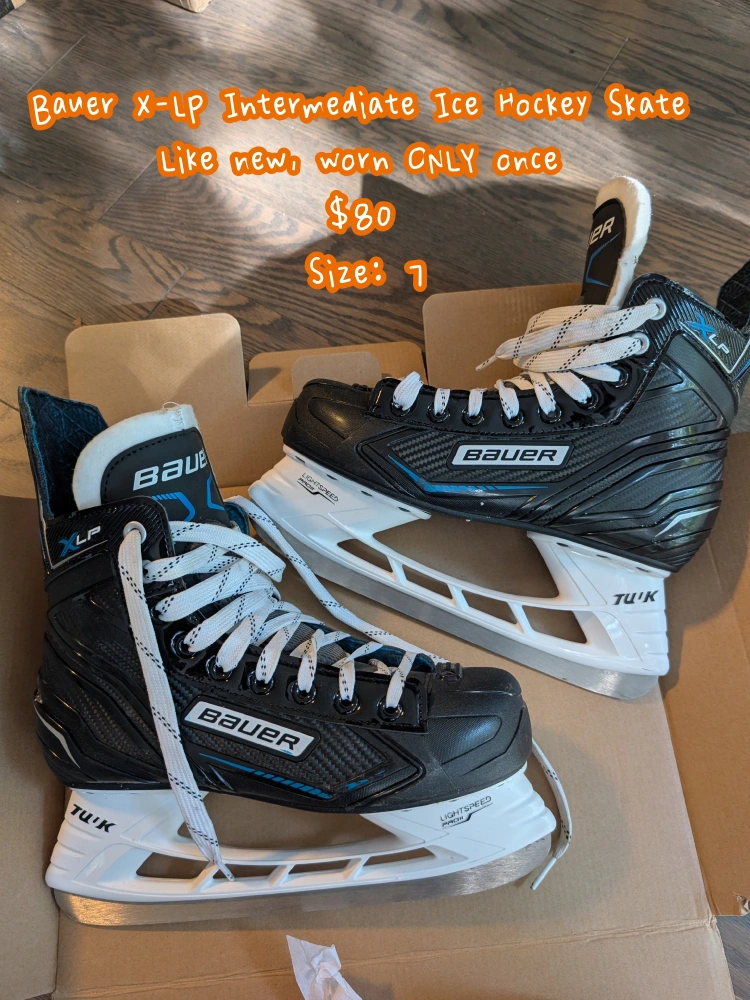 Selling a pair of Bauer X-LP intermediate ice hockey skates in like-new condition! They've only been worn once. The size is 7.