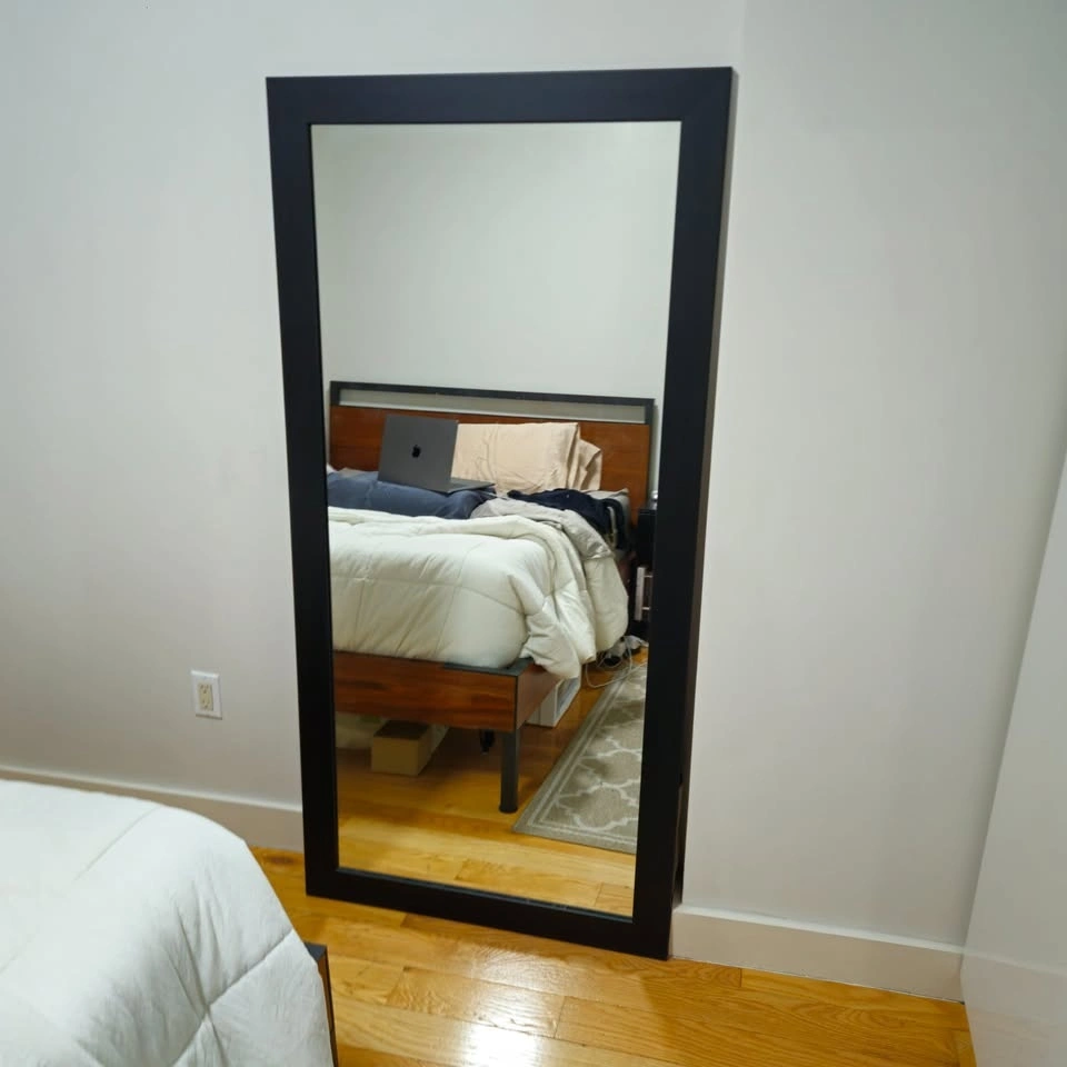 Buy & SellWooden-Framed Black Standing MirrorWooden-Framed Black Standing Mirror$200Bought for $385 one year ago. This is really thick, durable, quality craftsmanship. It also weighs a bunch! It is 66" X 32" (H x W).WHERE TO MEETQueensboro Plaza 7/N/W StationView MapSELLERverifiedJosh HLong Island City882 reviews0 chats·0 favorites·18 viewsSEND CHAT TO SELLERHi Josh H! I’m interested in your listing.Hi Josh H! I’m interested in your listing.Get the Karrot app to chatSign In to chat