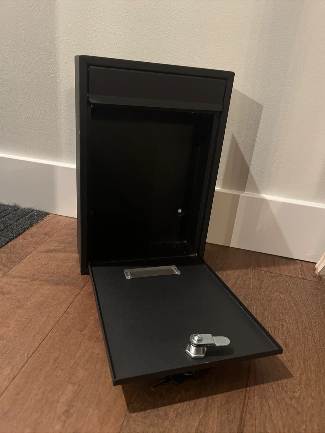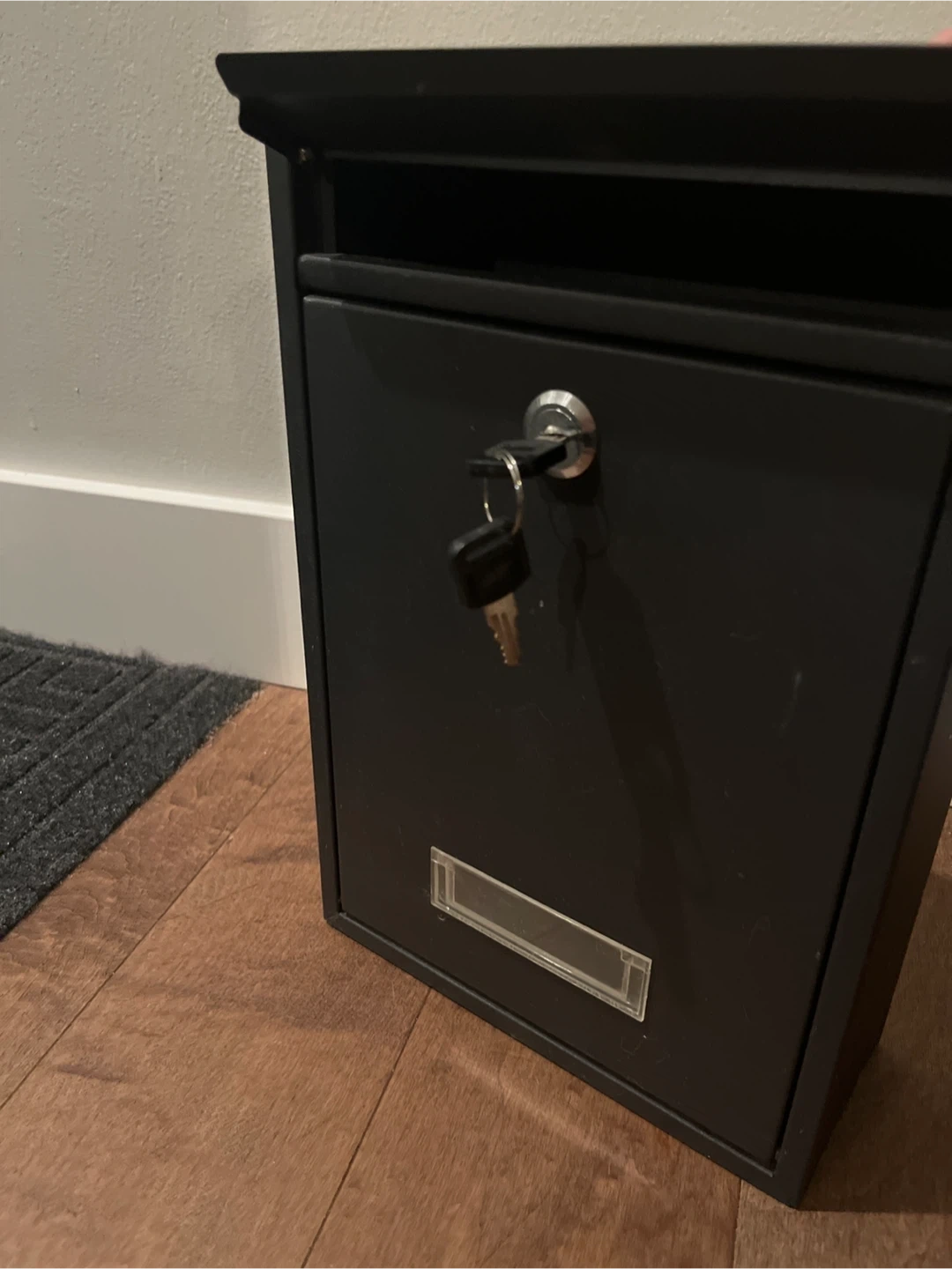 Buy & SellBlack Locking Wall Mount MailboxBlack Locking Wall Mount Mailbox$20Like new, black metal mountable mailbox. Only used a few months.ConditionLike newDimensions8.5”w x 12.5”t x 3”dWHERE TO MEETCheck LocationView MapSELLERverifiedBJ LafondPrince Rupert873 reviews2 chats·1 favorites·73 viewsSEND CHAT TO SELLERHi BJ Lafond! I’m interested in your listing.Hi BJ Lafond! I’m interested in your listing.Get the Karrot app to chatSign In to chat