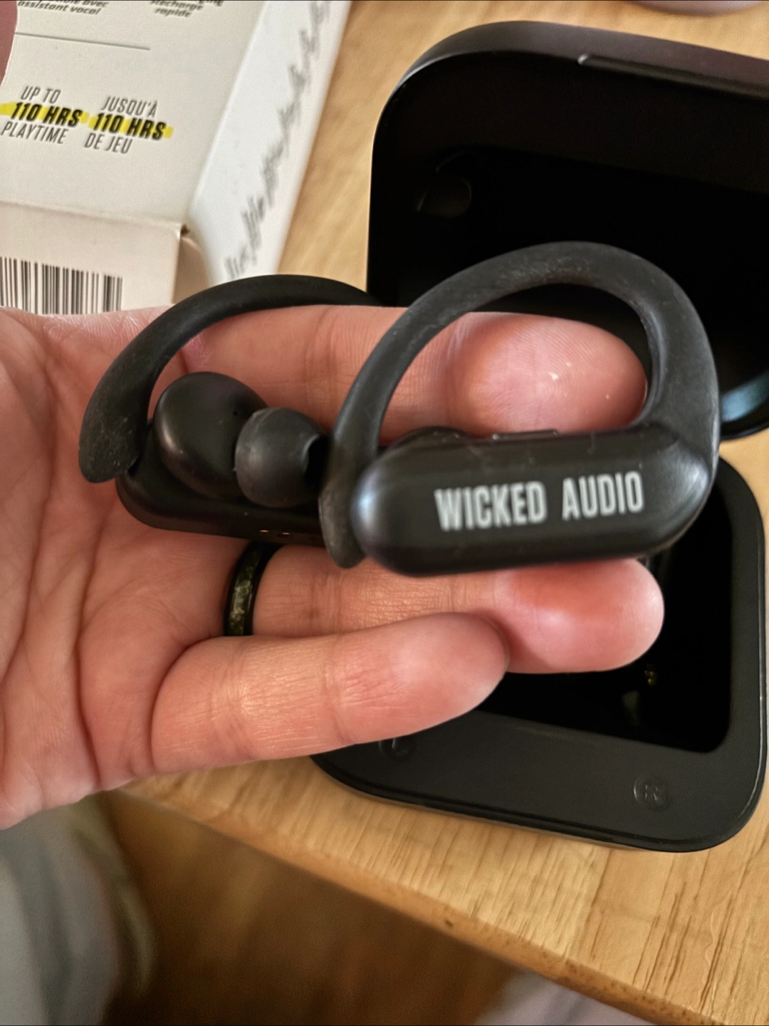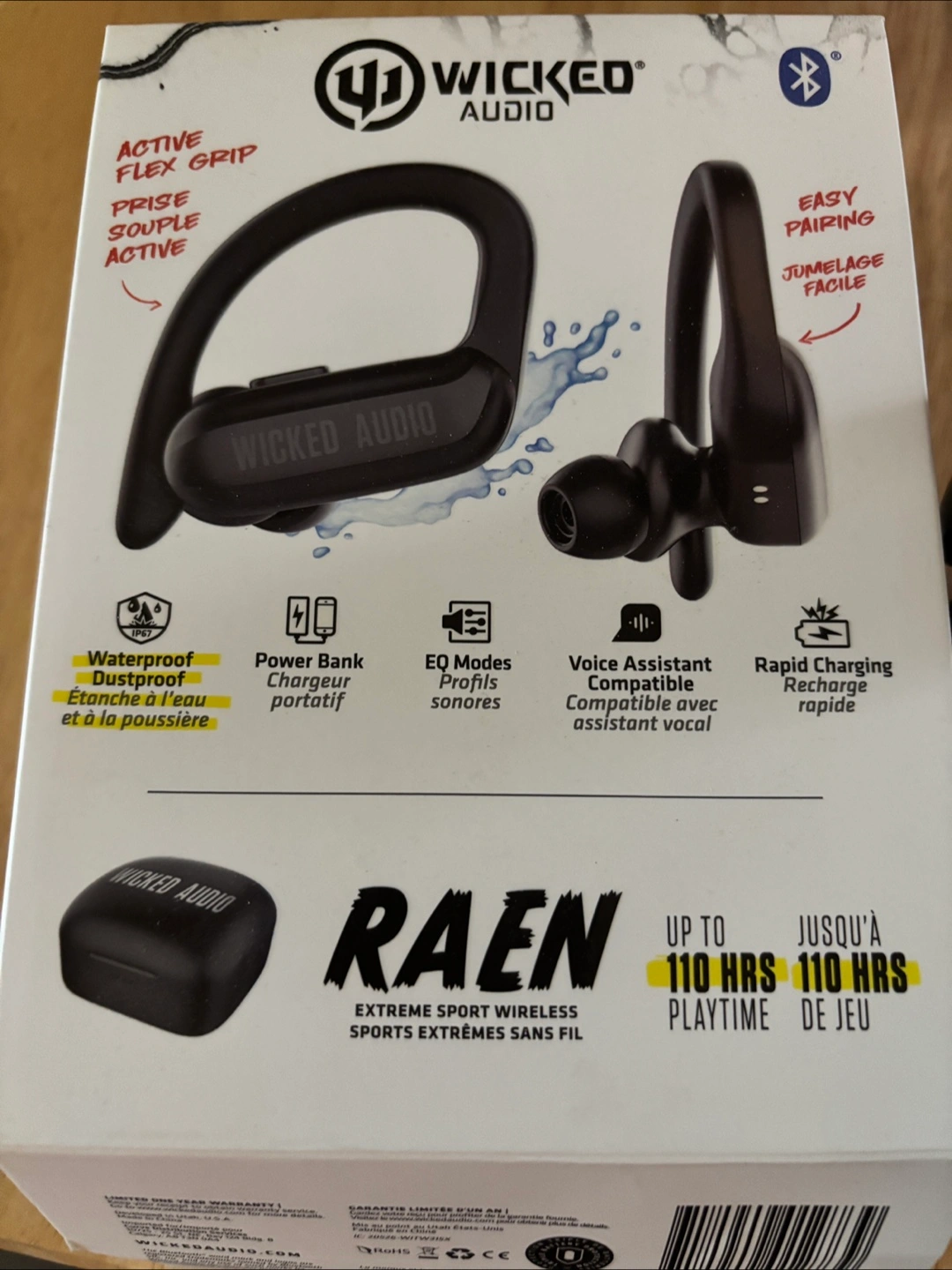Selling a pair of Wicked Audio Raen extreme sport wireless earbuds. They are waterproof and dustproof. They also have EQ modes and voice assistant compatibility. The box is included, along with a charger. Originally $79.99, only used once or twice, ended up getting a different that’s not over the ear!