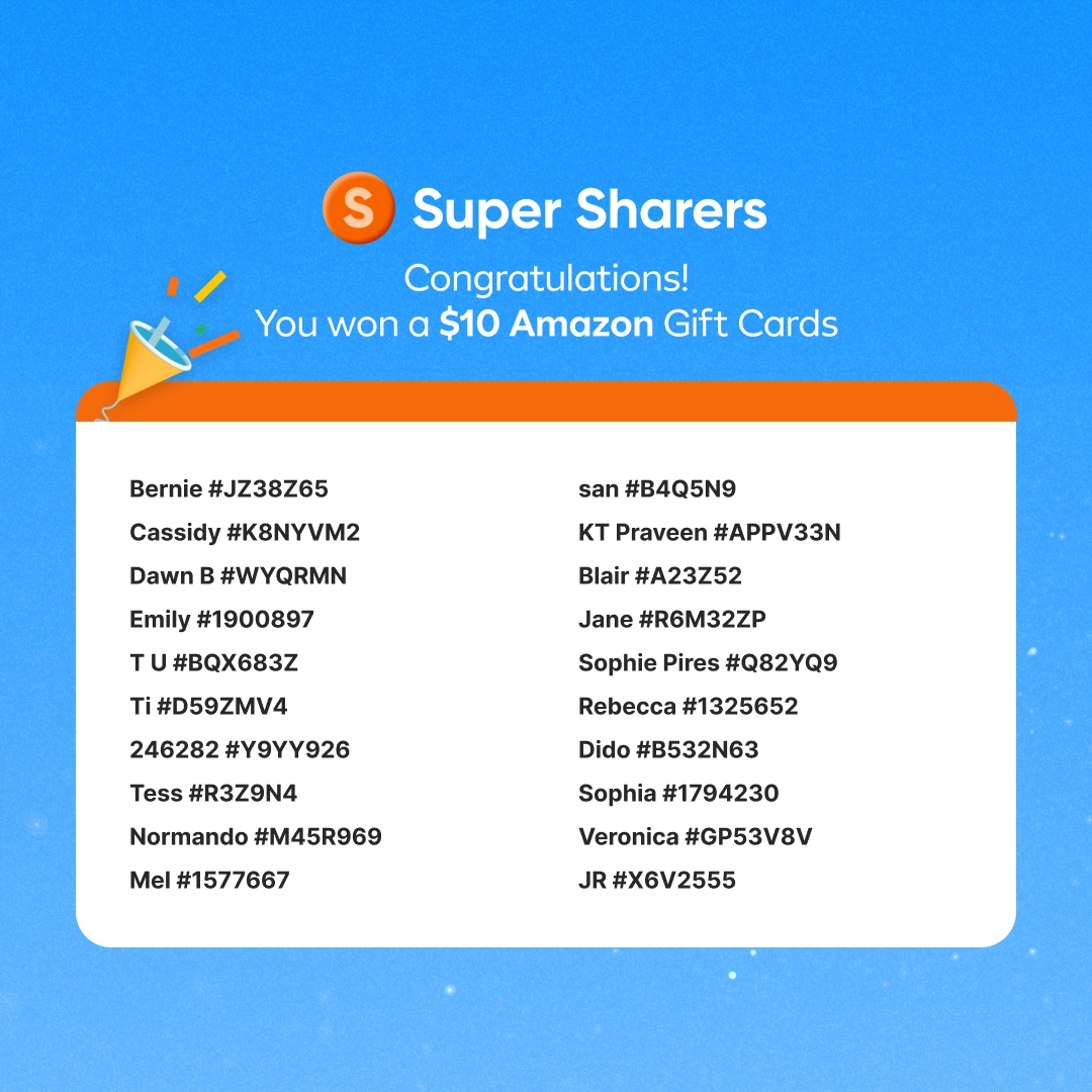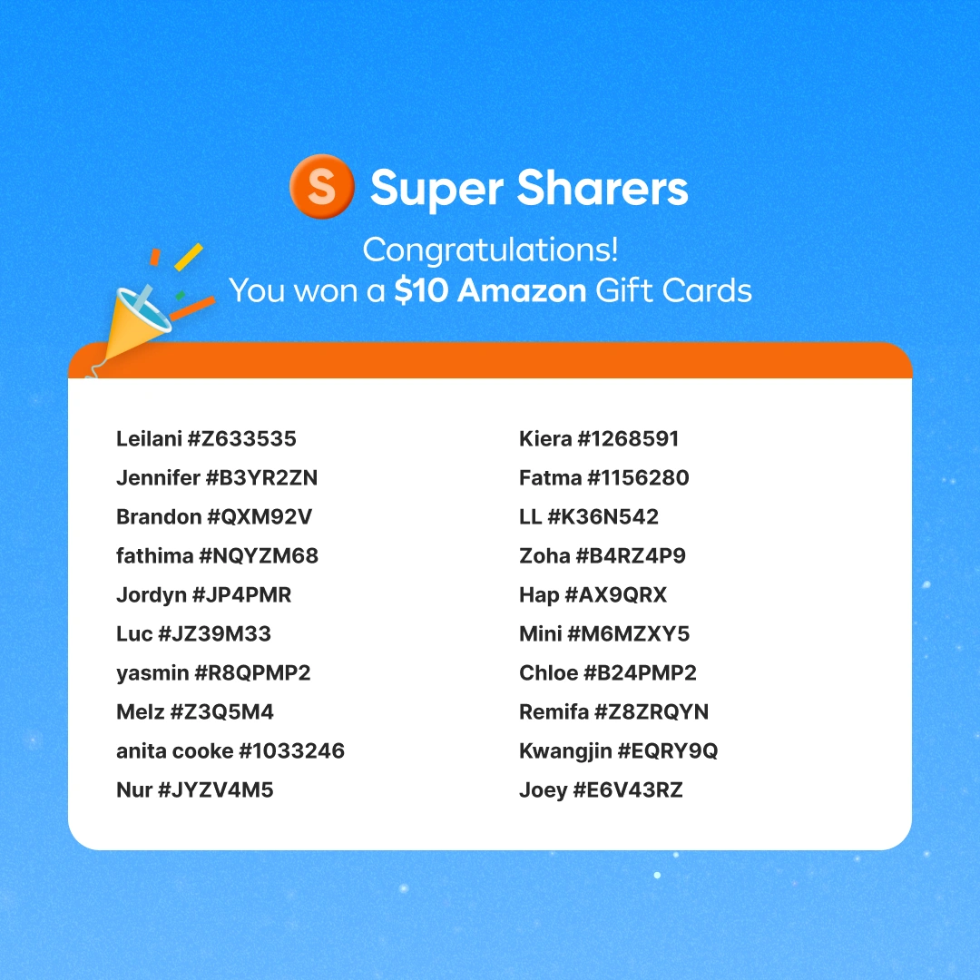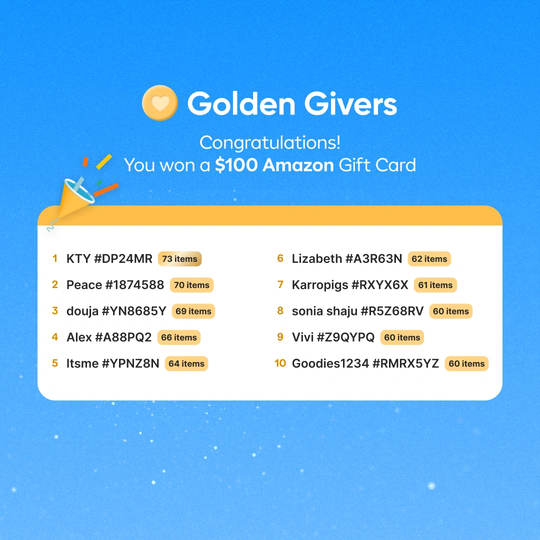 1000+Hey Karroters! Thanks for participating in our June Freecycle Special Edition event ❤️ We appreciate everyone who participated this time, and were excited to read all the comments from everyone who posted. Now, for the moment you’ve all been waiting for.....the PRIZE 🏆 winners for the 3 categories have been picked!!! Please check the image above to see the list of winners 🤗 Amazon Gift Card Winners 1. Please check your "My Rewards" section in the app. Gift cards have all been sent out! 2. Some users may share the same name so please check the unique user number. To view your user number go to My Karrot > View profile. Our team has already reached out to all winners individually. 3. Share your excitement with the Karrot community in the comments down below! Don’t be discouraged if you didn't win this time, we run events at Karrot every often! Remember that these events are about more than just the rewards. You’re making someone’s day and helping us build a more community-based marketplace. Thanks for tuning in and keep checking Karrot every week for more events like these 💗