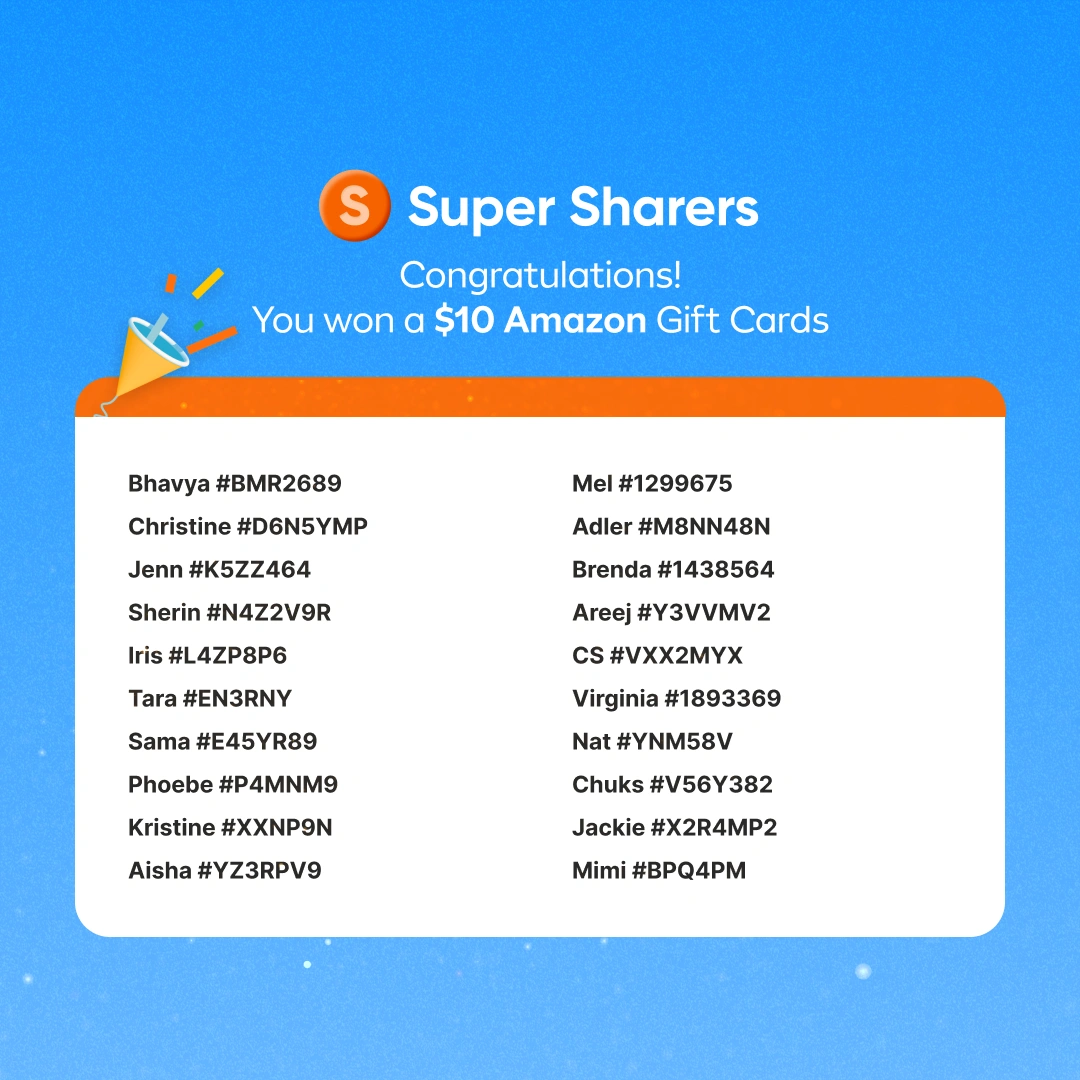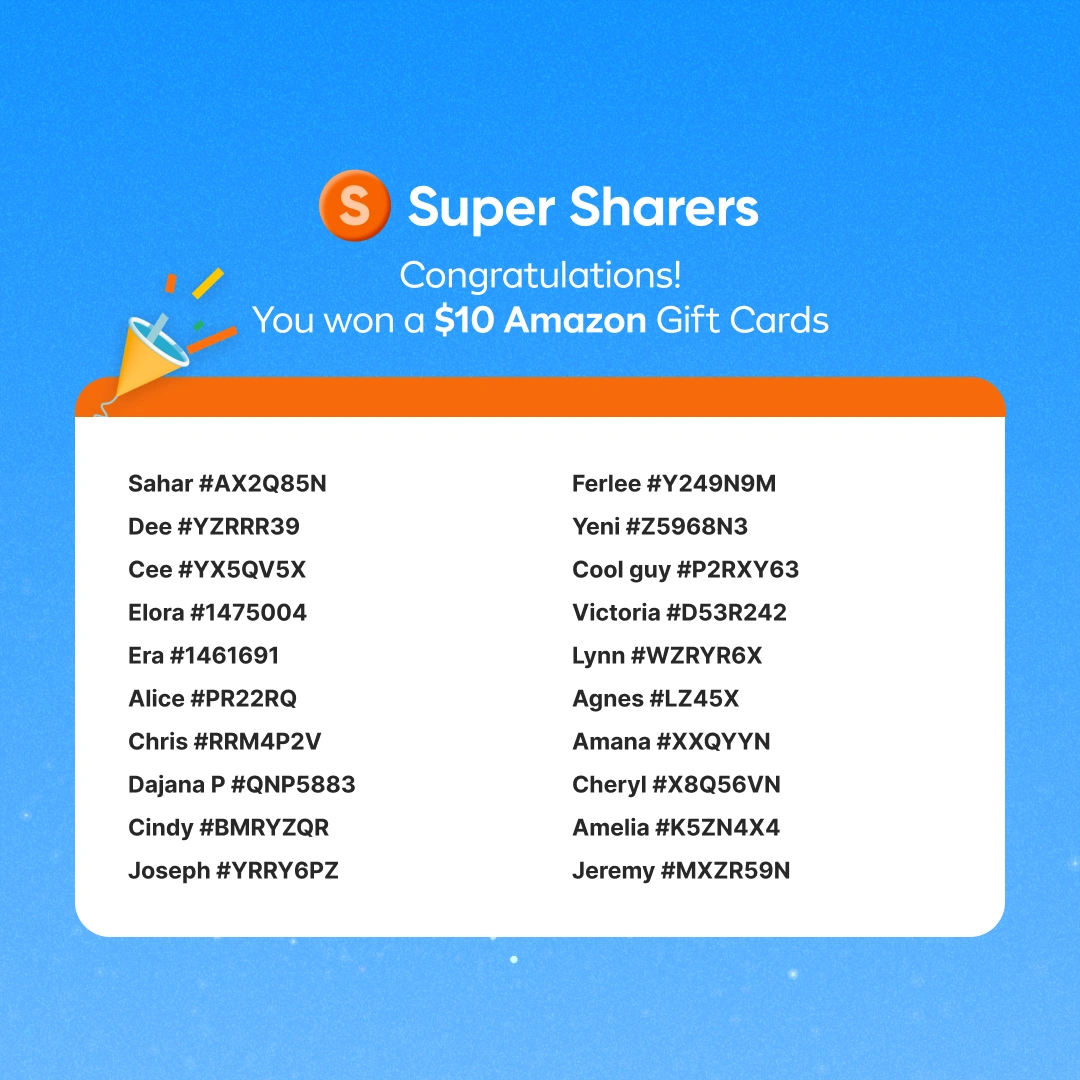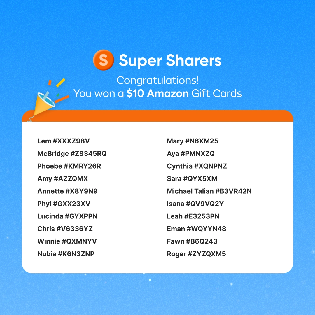1000+Hey Karroters! Thanks for participating in our June Freecycle Special Edition event ❤️ We appreciate everyone who participated this time, and were excited to read all the comments from everyone who posted. Now, for the moment you’ve all been waiting for.....the PRIZE 🏆 winners for the 3 categories have been picked!!! Please check the image above to see the list of winners 🤗 Amazon Gift Card Winners 1. Please check your "My Rewards" section in the app. Gift cards have all been sent out! 2. Some users may share the same name so please check the unique user number. To view your user number go to My Karrot > View profile. Our team has already reached out to all winners individually. 3. Share your excitement with the Karrot community in the comments down below! Don’t be discouraged if you didn't win this time, we run events at Karrot every often! Remember that these events are about more than just the rewards. You’re making someone’s day and helping us build a more community-based marketplace. Thanks for tuning in and keep checking Karrot every week for more events like these 💗