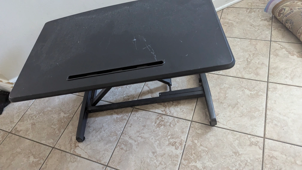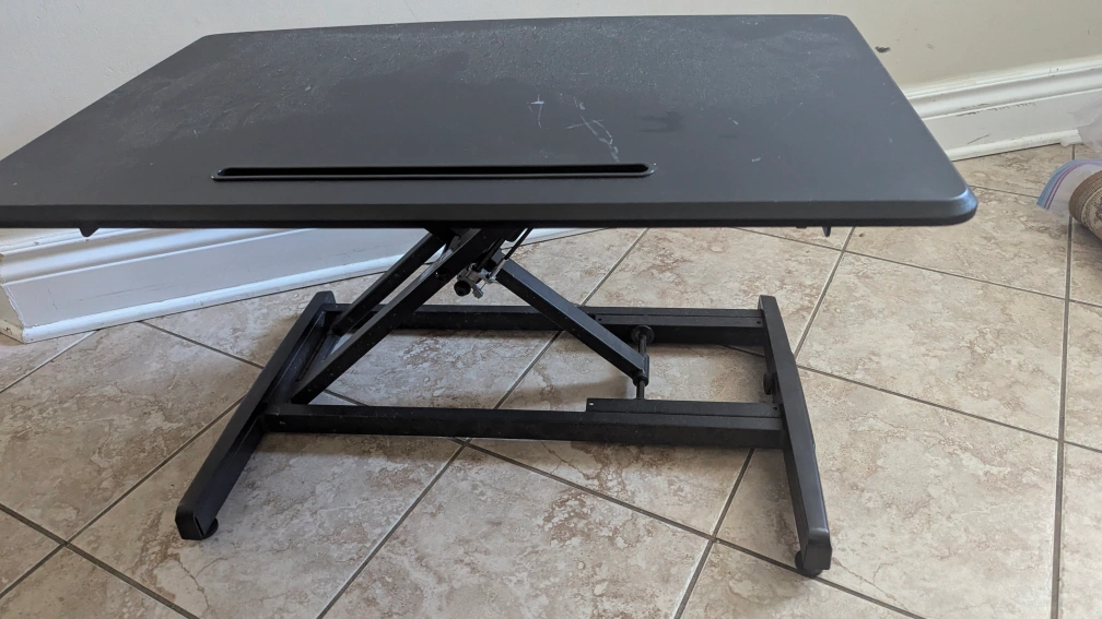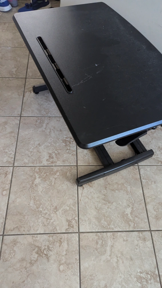 Selling a black standing desk! It's in good condition and ready for a new home. Perfect for setting up a home office or just adding a little flexibility to your workspace