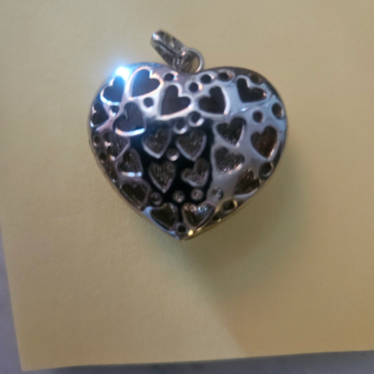 Selling a Juicy Couture heart pendant charm. It features a heart shape with the Juicy Couture logo across the front. One side is encrusted with rhinestones, and the other side has a heart cutout design.