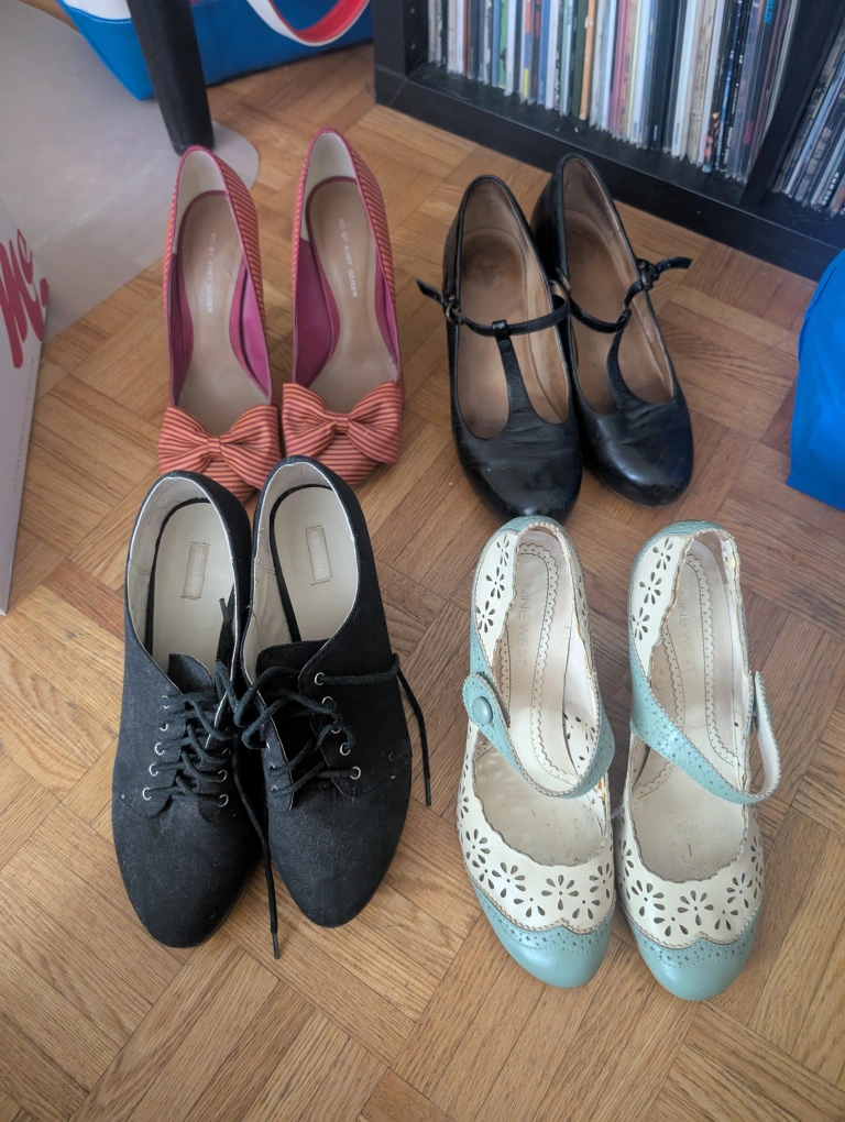 Selling a collection of ladies' shoes in various styles and colours. They're all used and ready for a new home. Please take a look at the pictures for details! Some are good condition, some are worn.