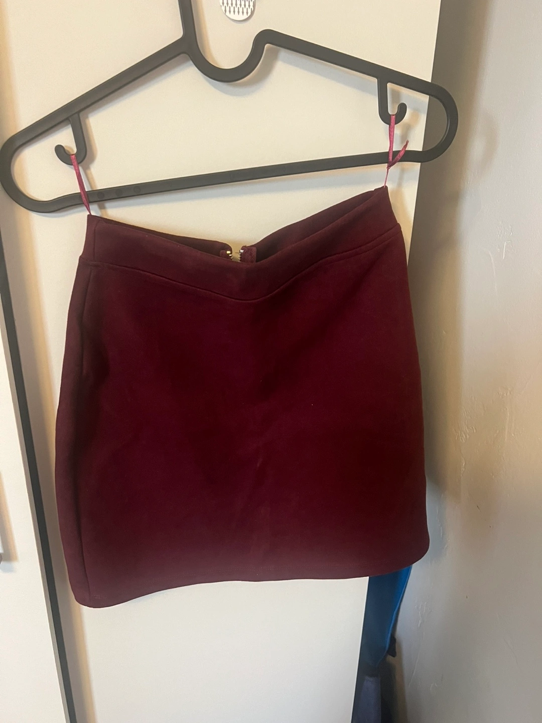 A cute burgundy mini skirt, perfect for adding a pop of colour to your wardrobe! It's in great condition and ready for a new home