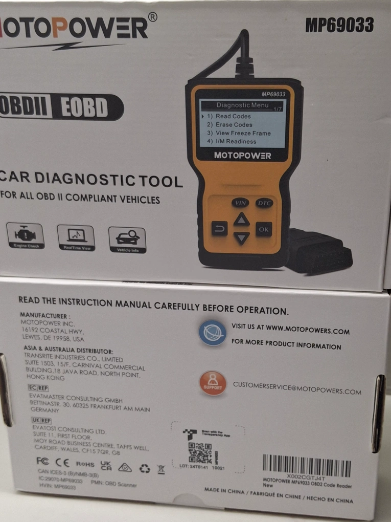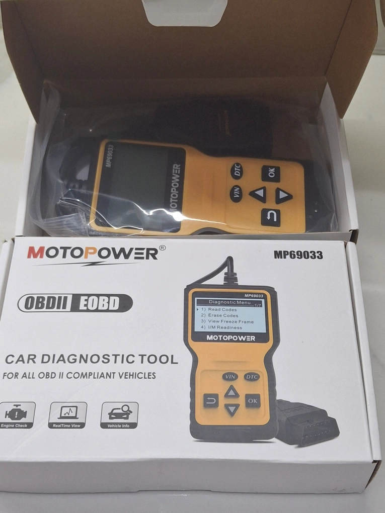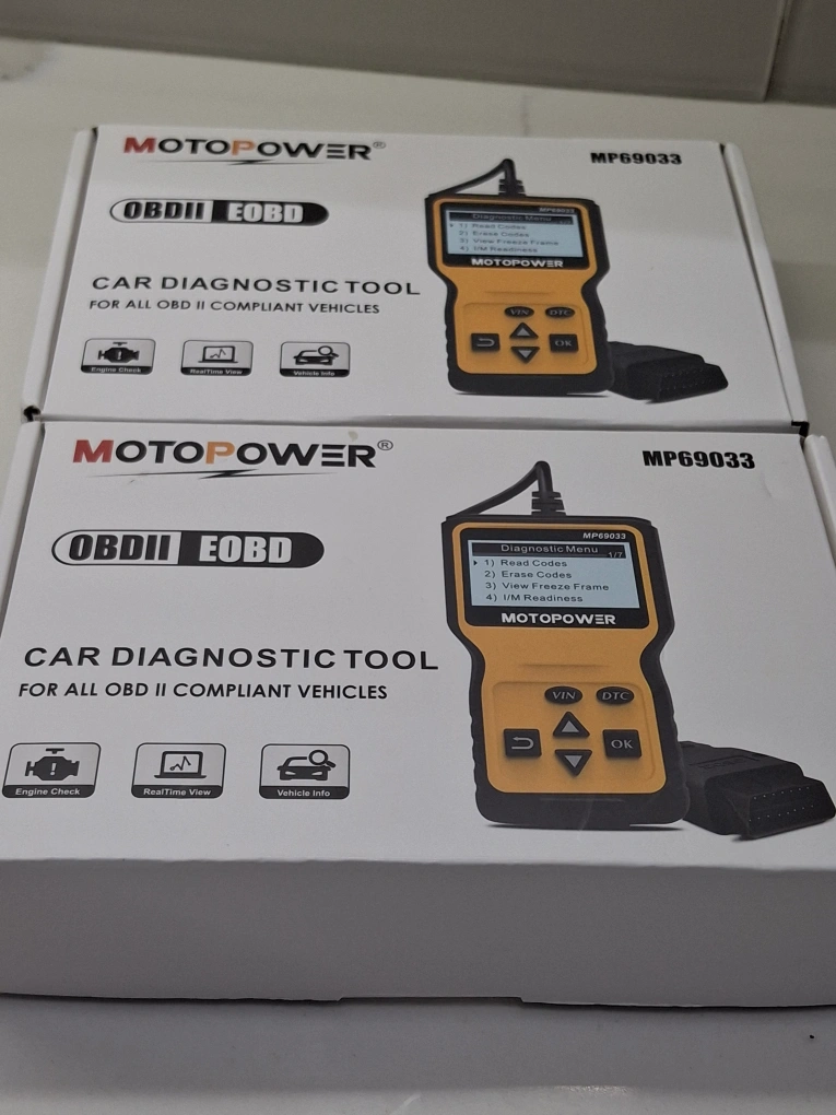 Selling a brand new MOTOPOWER MP69033 OBDII EOBD car diagnostic tool! It's still in its original packaging and has never been used. This tool is compatible with all OBD II compliant vehicles and can read and erase codes, view freeze frame data, and check I/M readiness. $30 each