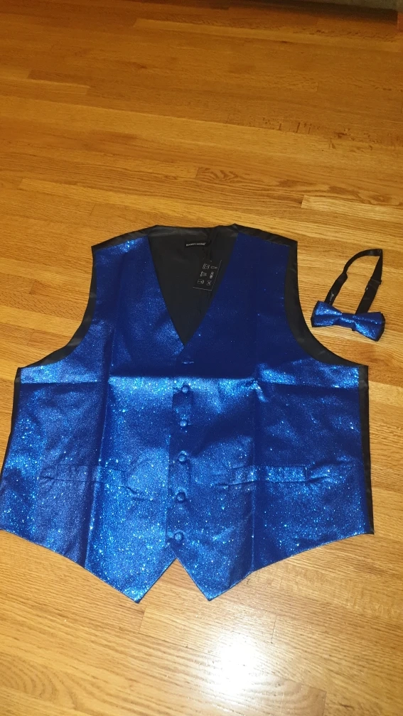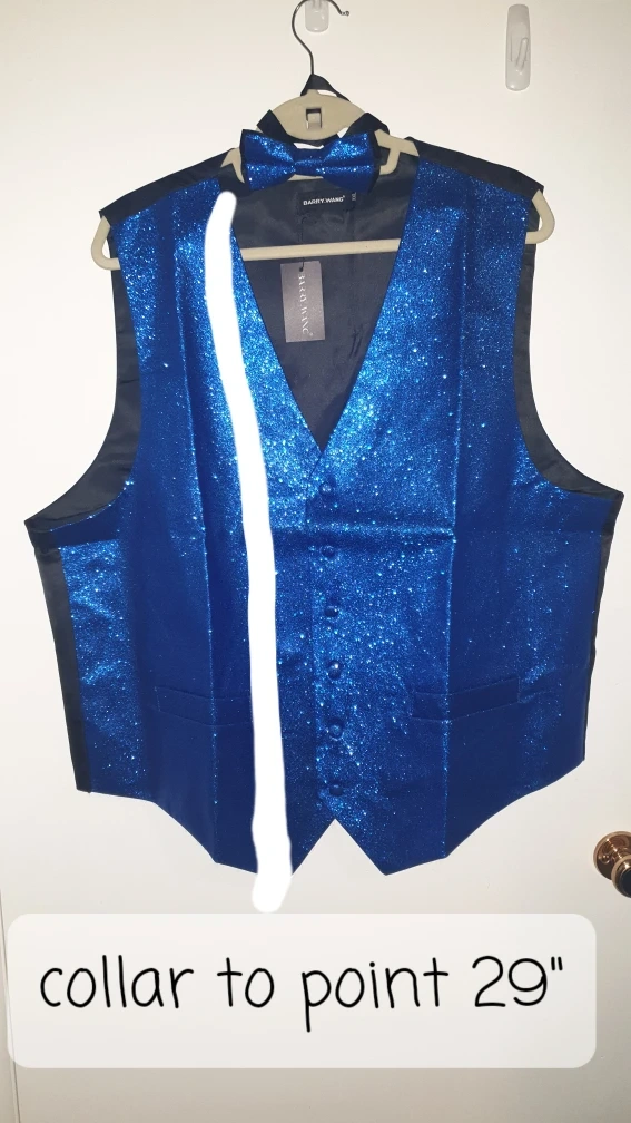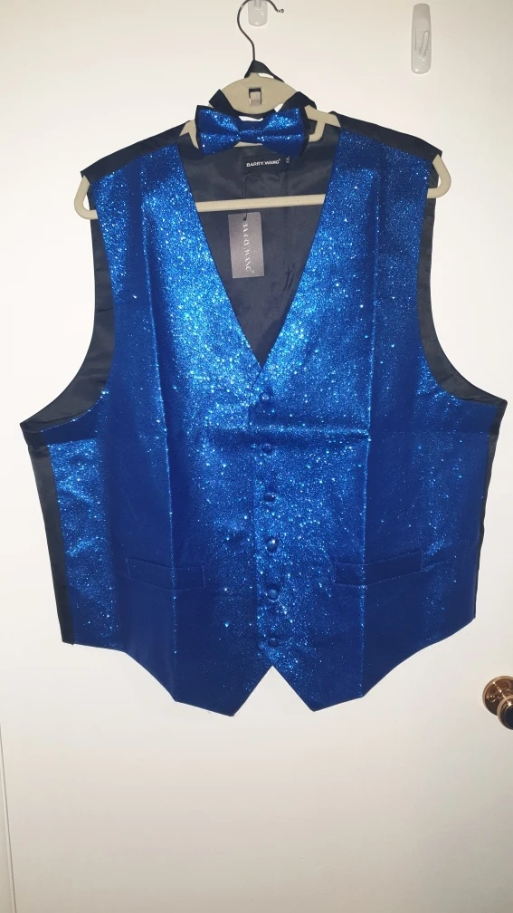 Barry Wang vests and bow tie set in sparkly blue. Size 2XL. $20.00 m . It is new and it's in great condition. Cash only please.