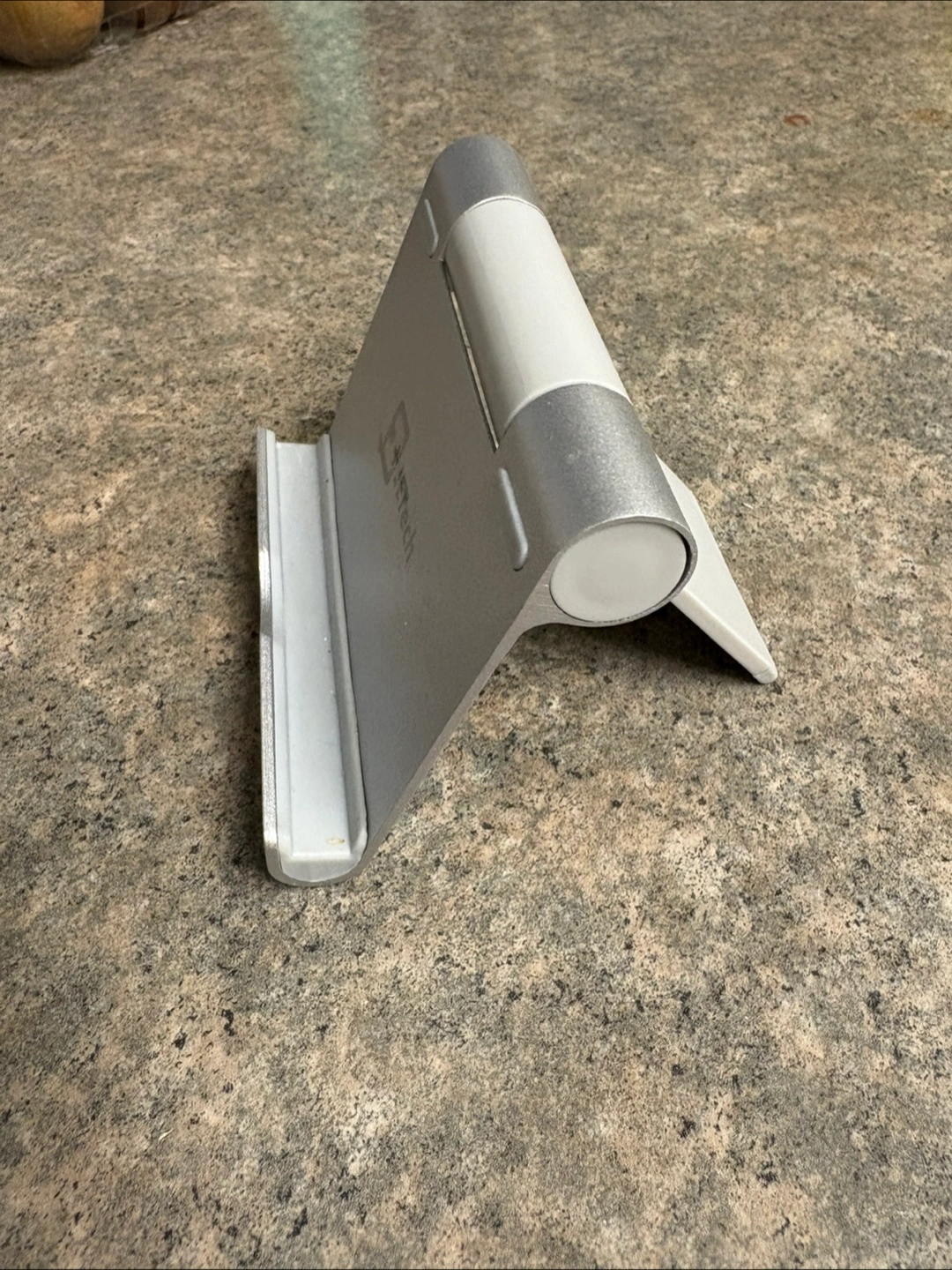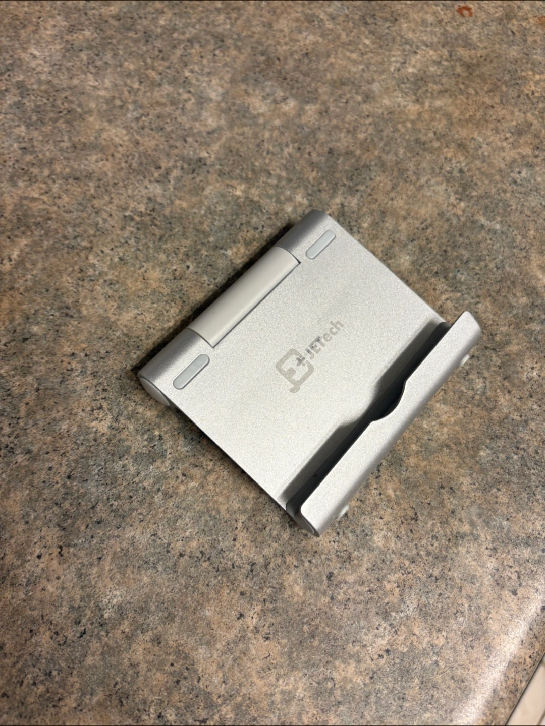 Selling a JETech adjustable cell phone stand in silver. It's in great condition and perfect for holding your phone while you work or watch videos! Lightweight and portable, so you can easily take it with you on the go!