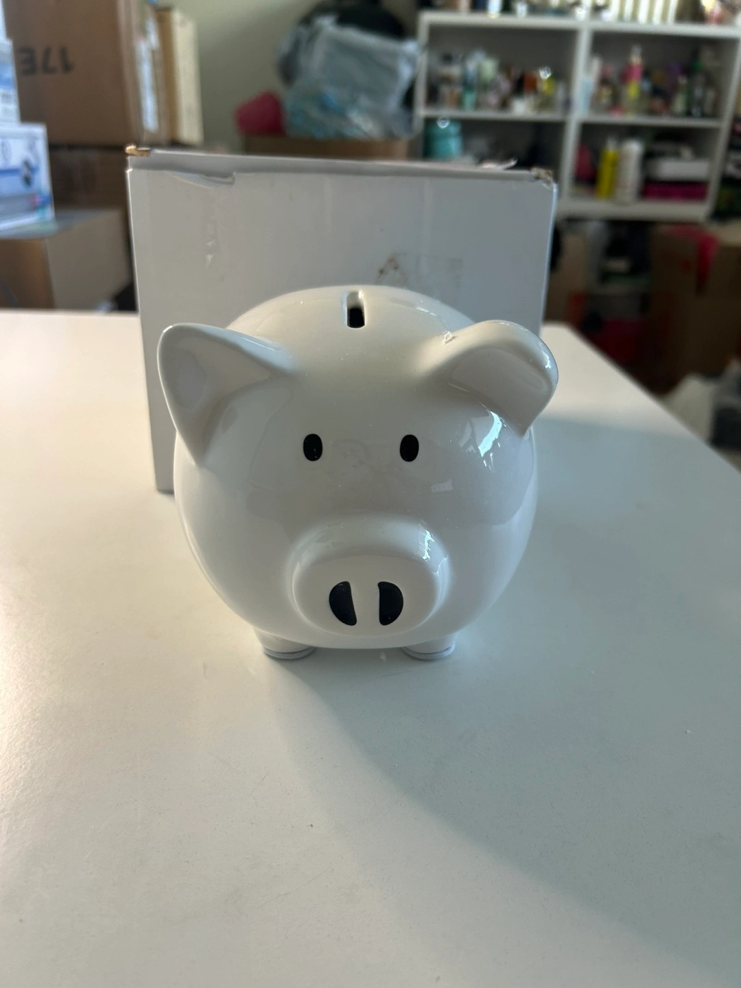 34Selling a cute white piggy bank! It's in great condition and comes with its original box. Perfect for saving up those loonies and toonies!