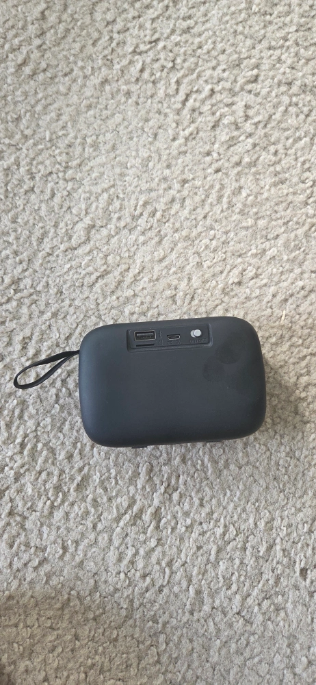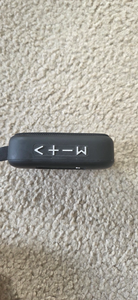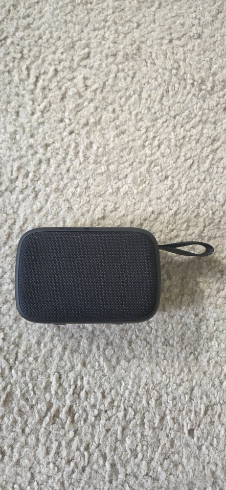 Selling a portable Bluetooth speaker in black. It's in great condition and ready to bring some tunes to your next adventure! It has a convenient carrying strap and easy-to-use buttons.