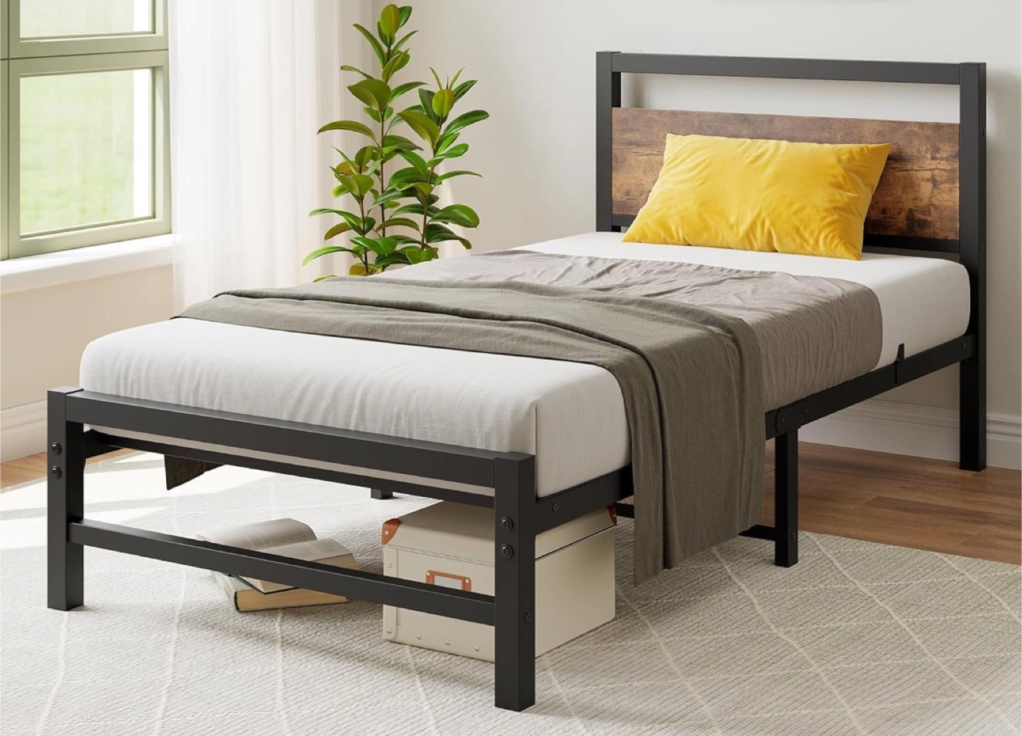 Twin Size Metal Bed Frame with Headboard