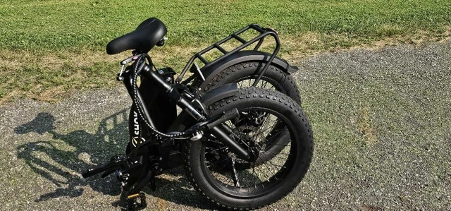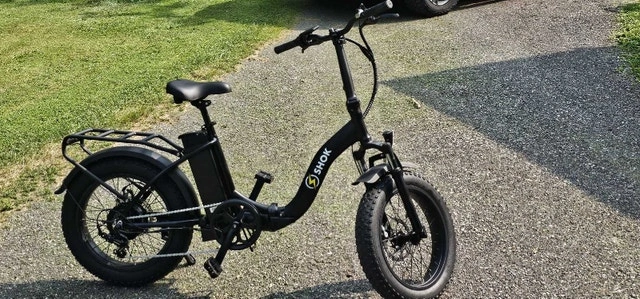 PRICE GOES BACK UP TO $1699 WITH THE SPRING SHIPMENT. LOWEST PRICE IN CANADA!! FREE ASSEMBLY! HST EXTRA. FINAL CLEARANCE. Up to $2299 IN STORES FOR SIMILAR BIKES. Introducing the SHOK Pulsar Folding 20" Fat Tire Step Through eBike, a versatile powerhouse built for all-terrain adventures & seamless urban commutes. Crafted around a step-through aluminum frame, the Pulsar ensures effortless accessibility and comfort, whether cruising through city streets or exploring rugged trails. Its innovative folding design allows for easy storage & transport, fitting neatly into car trunks. 48v Completely foldable 5 levels of power assist Removable Lithium 10.5ah 500wh Battery Up to 80km range 7-Speed Shimano Gearing Responsive Disc Braking All aluminum light weight frame & carry rack 20" x 4" Fat Tires for all Terrain use. Back-Lit LCD Display with high intensity automatic light sensing headlight and taillight. Adjustable Seat & Handlebar height. FULL Size 26" AVAIL @ $1350 BRANTFORD. DELIVERY AVAIL. Condition: New. Cash accepted.