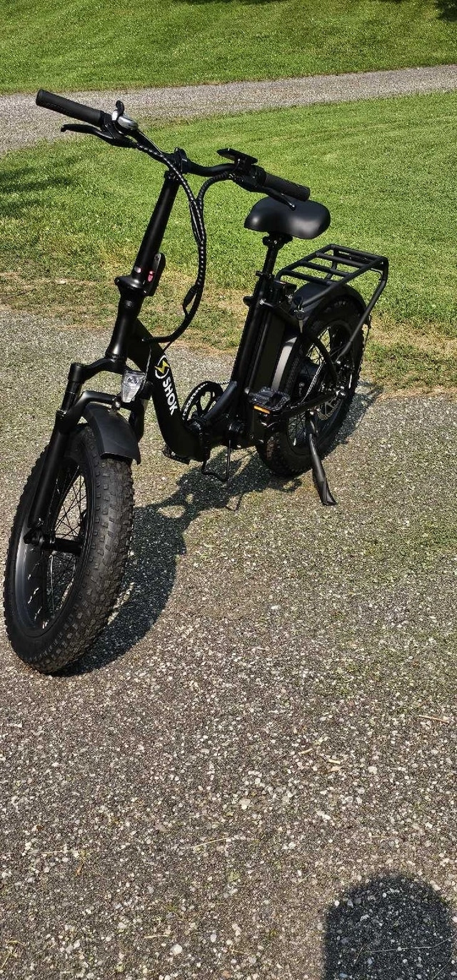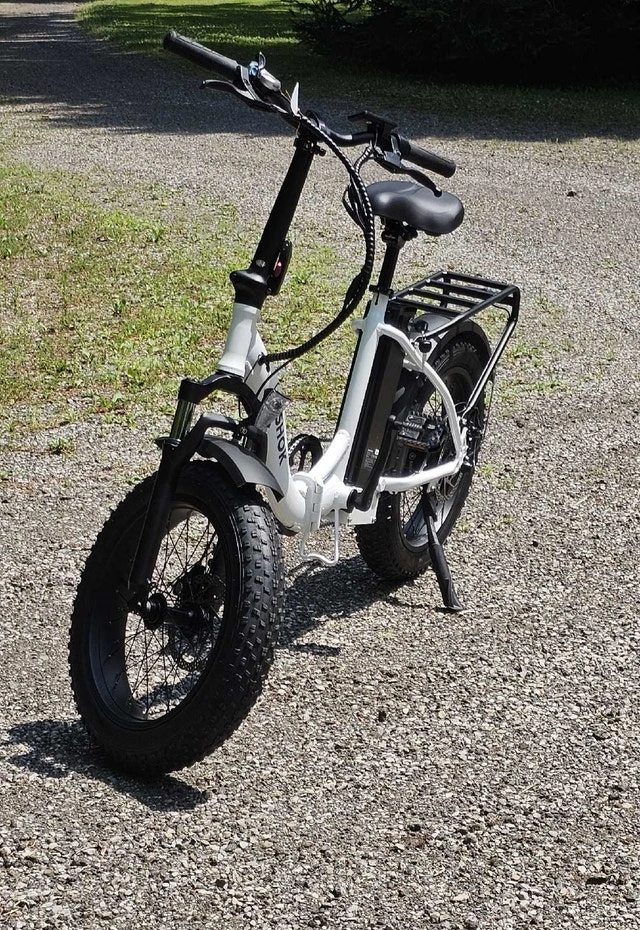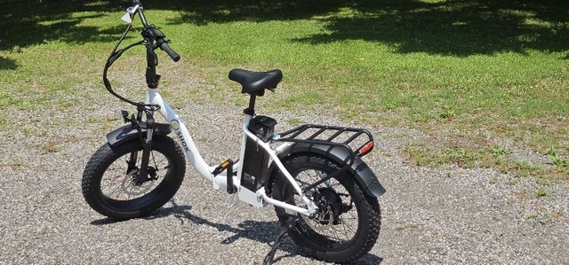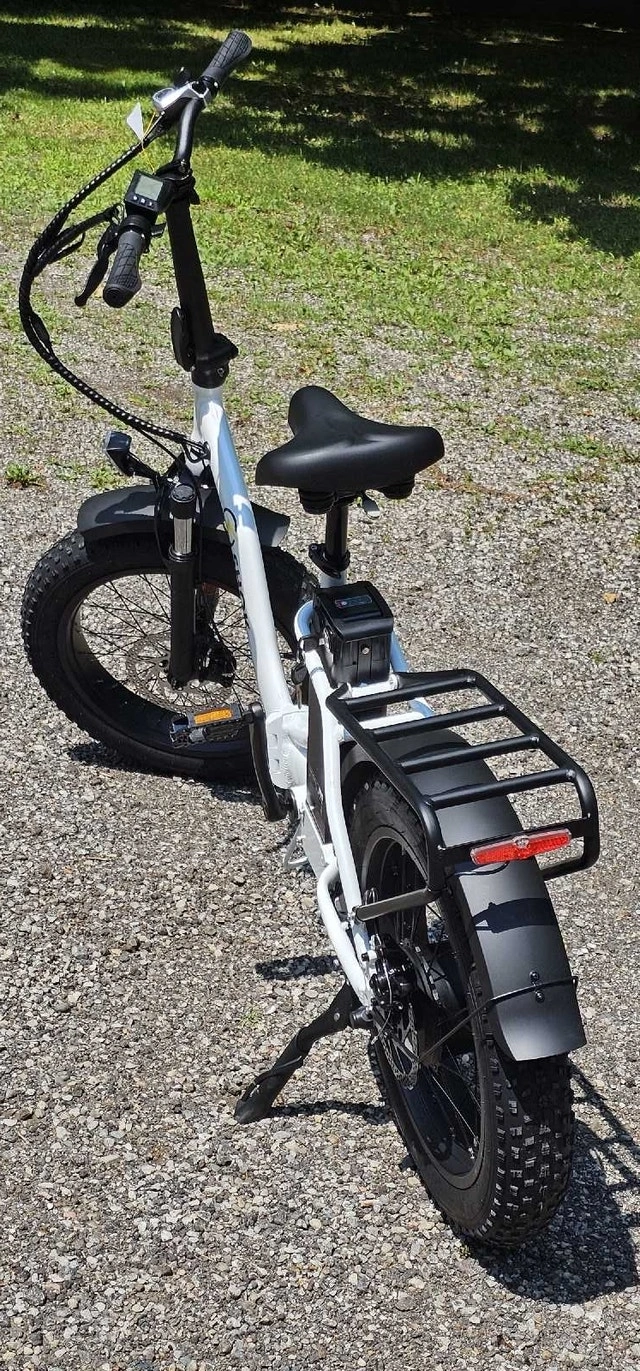 PRICE GOES BACK UP TO $1699 WITH THE SPRING SHIPMENT. LOWEST PRICE IN CANADA!! FREE ASSEMBLY! HST EXTRA. FINAL CLEARANCE. Up to $2299 IN STORES FOR SIMILAR BIKES. Introducing the SHOK Pulsar Folding 20" Fat Tire Step Through eBike, a versatile powerhouse built for all-terrain adventures & seamless urban commutes. Crafted around a step-through aluminum frame, the Pulsar ensures effortless accessibility and comfort, whether cruising through city streets or exploring rugged trails. Its innovative folding design allows for easy storage & transport, fitting neatly into car trunks. 48v Completely foldable 5 levels of power assist Removable Lithium 10.5ah 500wh Battery Up to 80km range 7-Speed Shimano Gearing Responsive Disc Braking All aluminum light weight frame & carry rack 20" x 4" Fat Tires for all Terrain use. Back-Lit LCD Display with high intensity automatic light sensing headlight and taillight. Adjustable Seat & Handlebar height. FULL Size 26" AVAIL @ $1350 BRANTFORD. DELIVERY AVAIL. Condition: New. Cash accepted.
