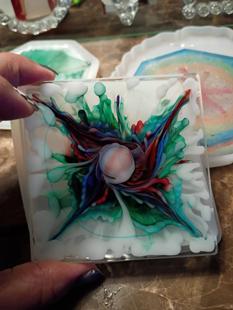 49Selling a variety of handmade resin art pieces. These include coasters with unique designs and decorative items. They would be a great addition to your home or a thoughtful gift for someone special! Each piece is unique and handcrafted.