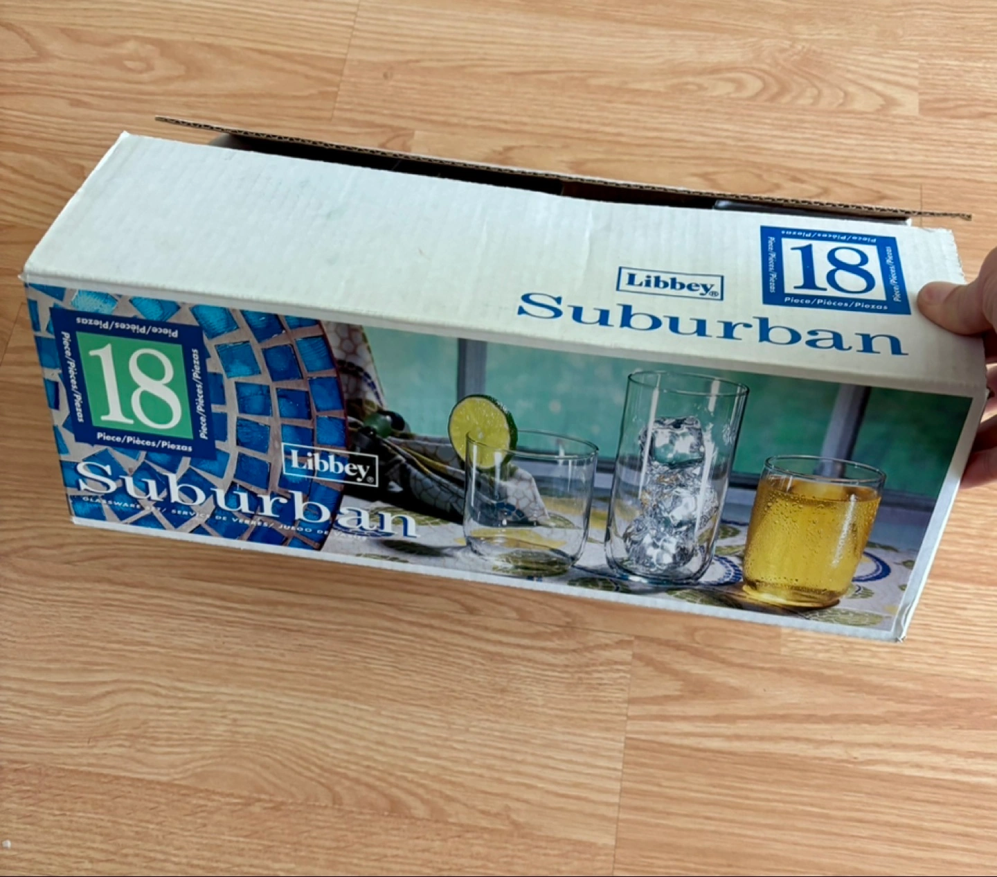 Selling a set of 18 Libbey Suburban glasses. They are new in the original box. Perfect for everyday use or entertaining guests! Also included are Mayfair and Jackson 500ml wine glass set of 4 also new in original box.