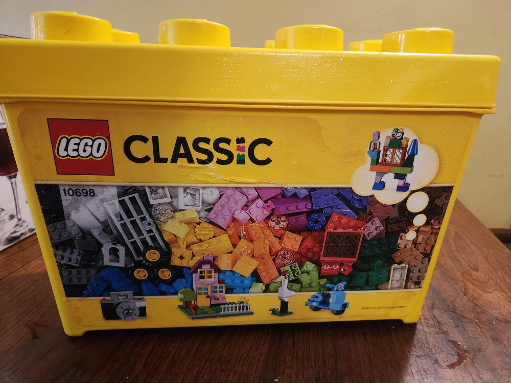 Big box of classic Lego that my kid has outgrown. we just cleaned it up so it's not dusty either! pickup at River Street and Dundas Street near the DVP.