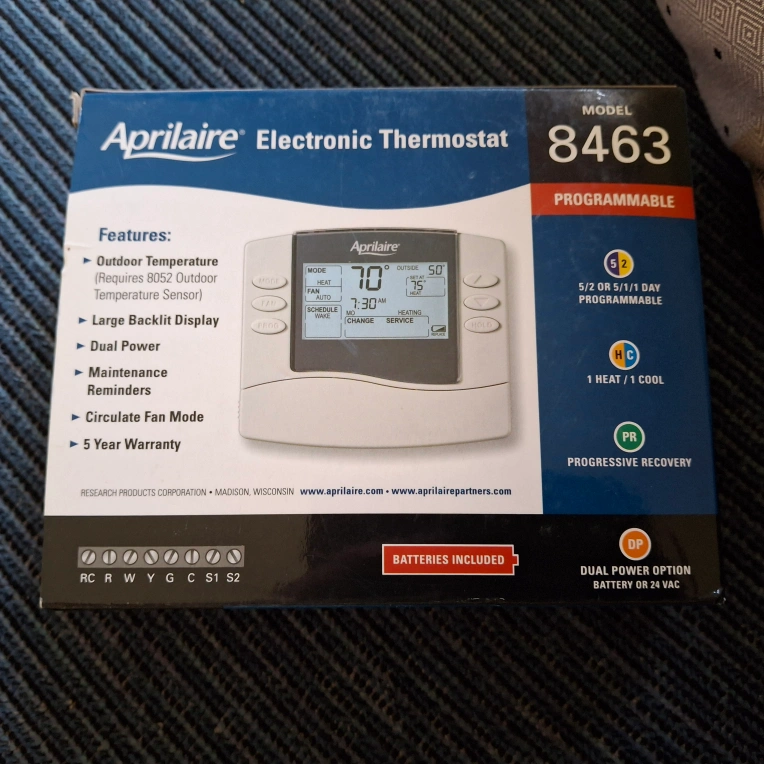 Selling a brand new Aprilaire Electronic Thermostat, model 8463! It's still in the box and has never been used.