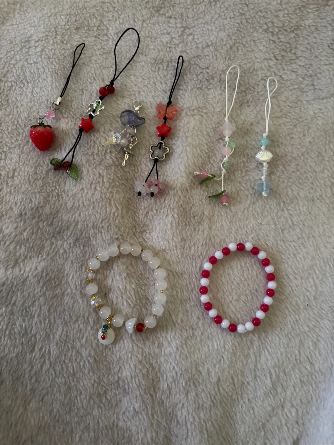 A bag of assorted craft supplies! Includes a variety of beads, charms, crochet pieces, a stamp, and earrings. Please contact to check the price