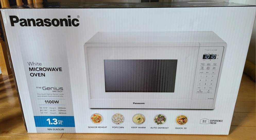 I'm offering a brand new, in box, Panasonic Genius Microwave NN-SU65LW with a 1.3 cu. ft. capacity and 1100W of power, featuring one-touch Genius Sensor and 7 auto cook settings for hassle-free cooking.