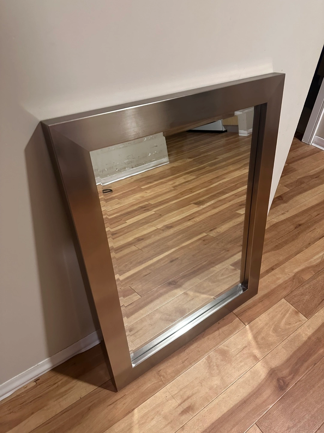 Selling a stylish silver-framed wall mirror. It's in great condition and ready to add a touch of elegance to any room. Perfect for entryways, bathrooms, or as a decorative piece in your living space