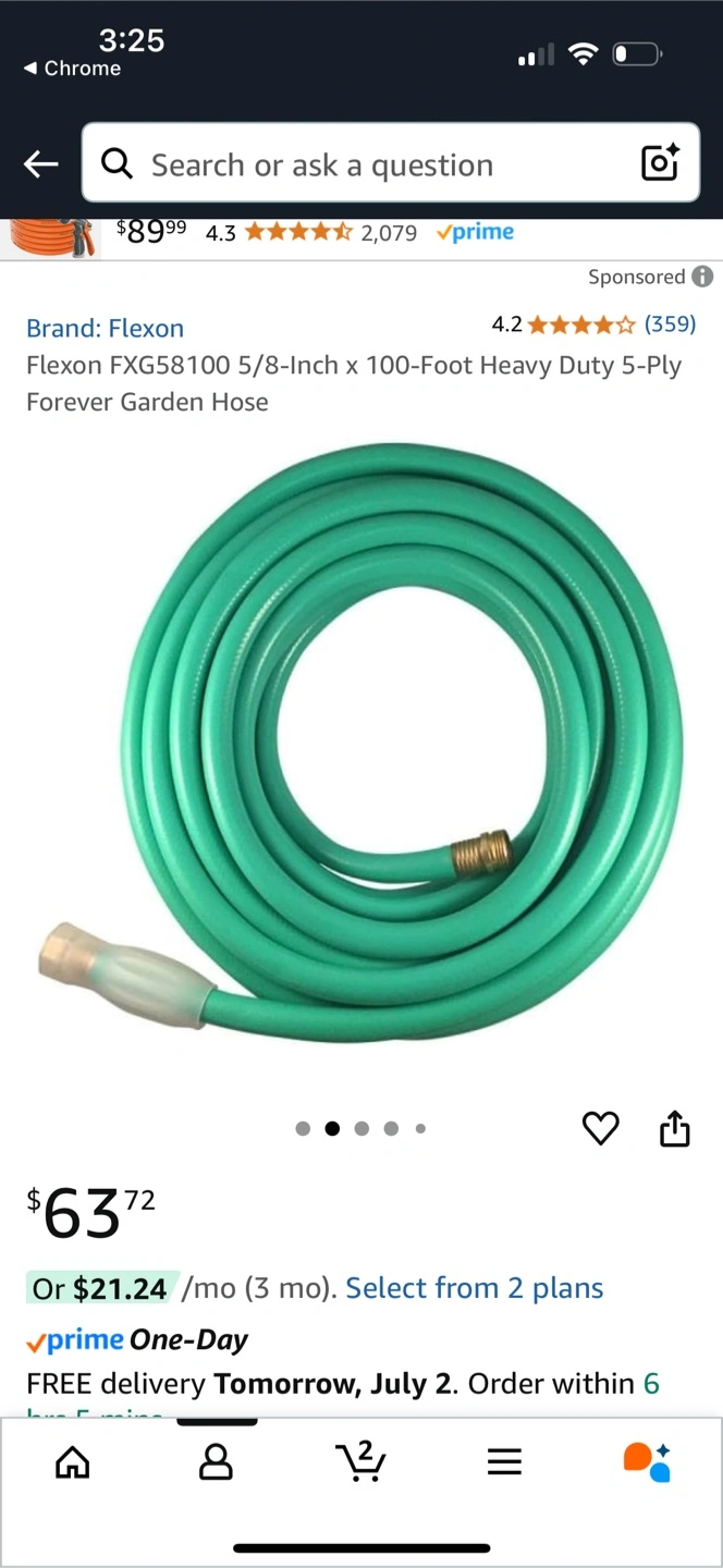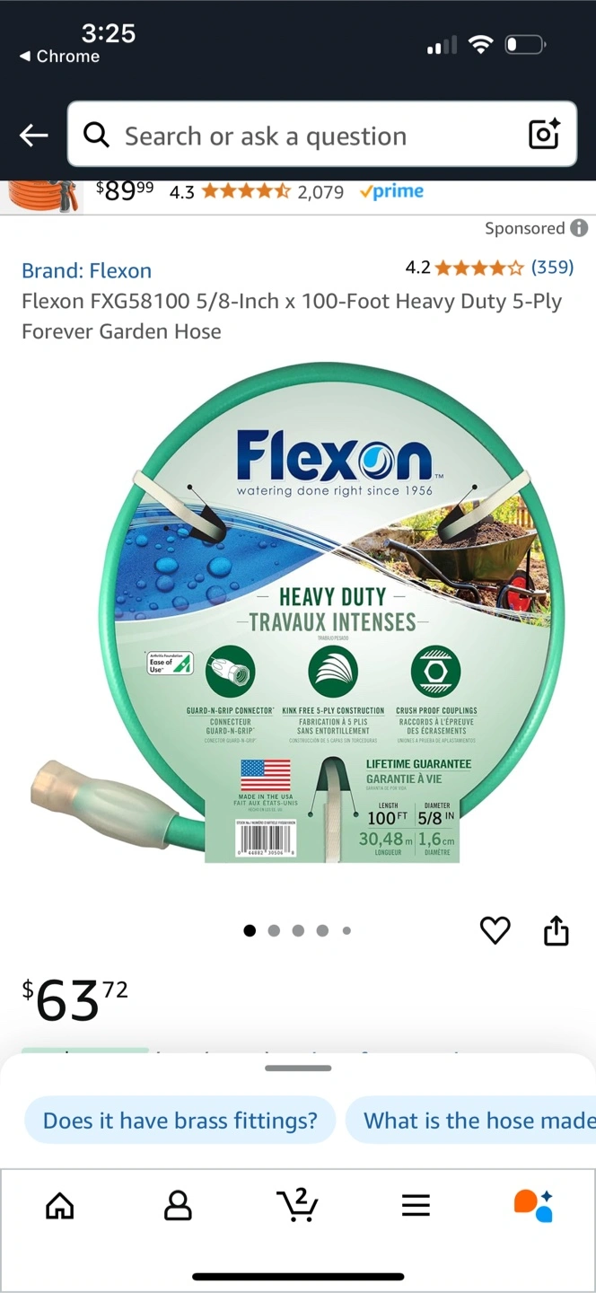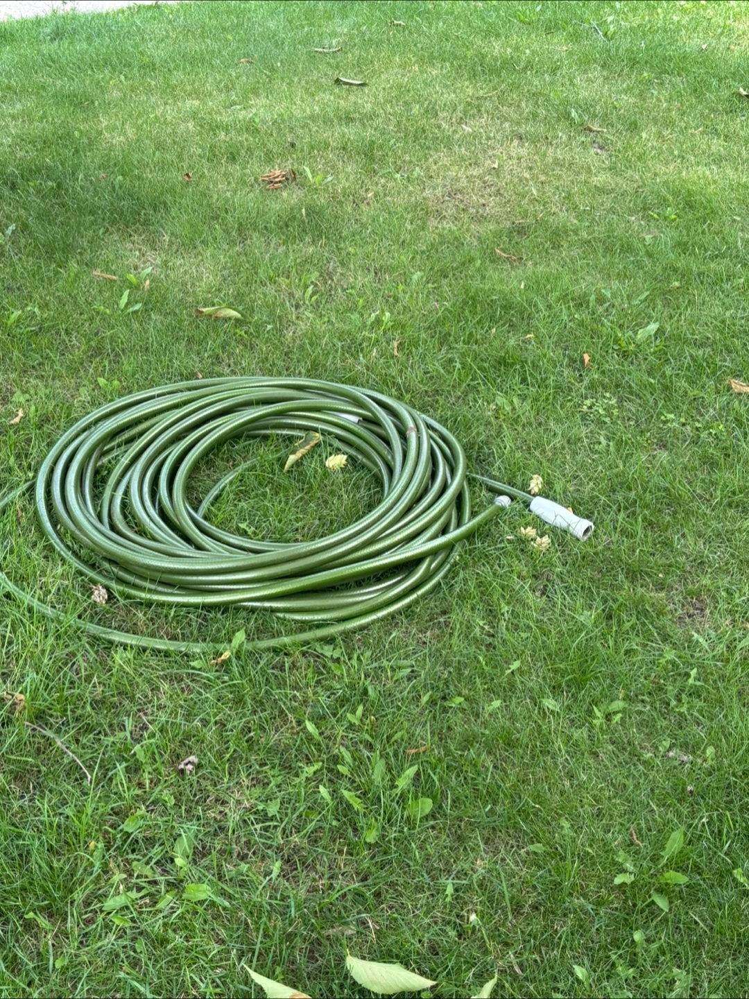 43Selling a Flexon heavy-duty 5-ply garden hose. It's 5/8 inch in diameter and 100 feet long, perfect for watering your garden or lawn. Features crush-proof couplings and kink-free construction for durability and ease of use